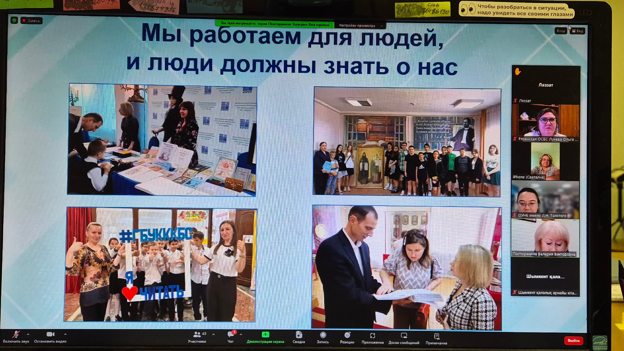 В коференции приняли участие коллеги из Краснодара, Владимира, Челябинска, Калининграда, и, конечно же, из КГУ «Шымкентская городская специальная библиотека для незрячих и слабовидящих граждан» г. Шымкент, Республика Казахстан, КГУ «Костанайская областная универсальная научная библиотека имени Л.Н. Толстого», КГУ «Спецбиблиотека для незрячих и слабовидящих граждан», г. Семей, Республика Казахстан и библиотека № 13, филиал, г. Рудный Костанайской области.