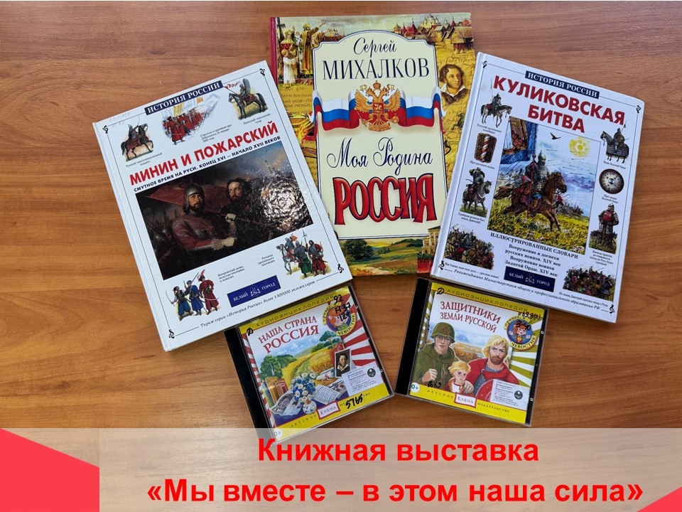 С 01 по 16 ноября 2025 года. Книжная выставка «Мы вместе – в этом наша сила», посвящённая Дню народного единстваАфиша