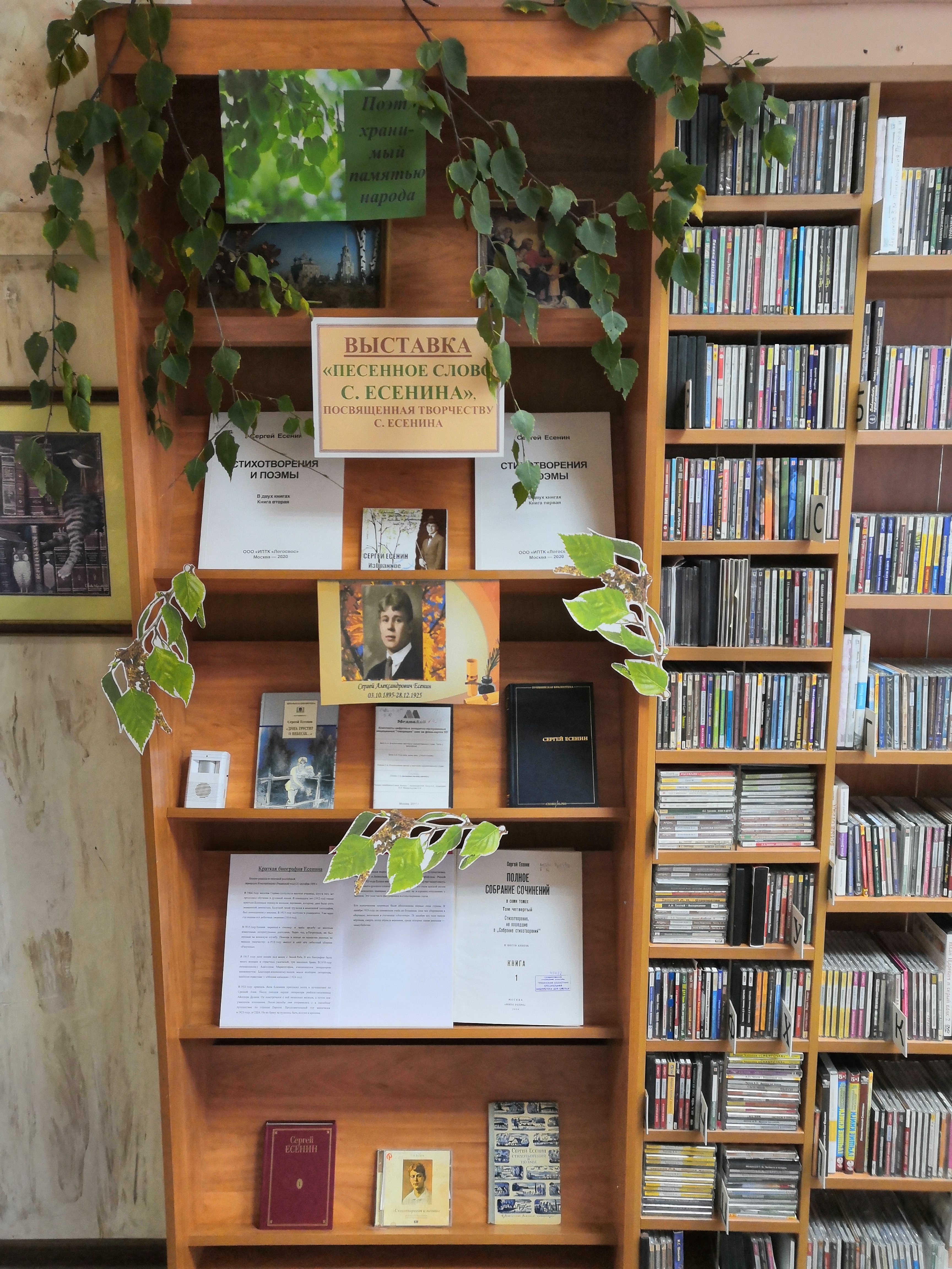 С 1 по 16 октября 2021 года в детском отделе библиотеки будет работать выставка «Песенное слово С. Есенина». На выставке представлены произведения С. Есенина (стихотворения, поэмы, проза), книги о его жизни и творчестве на разных носителях.