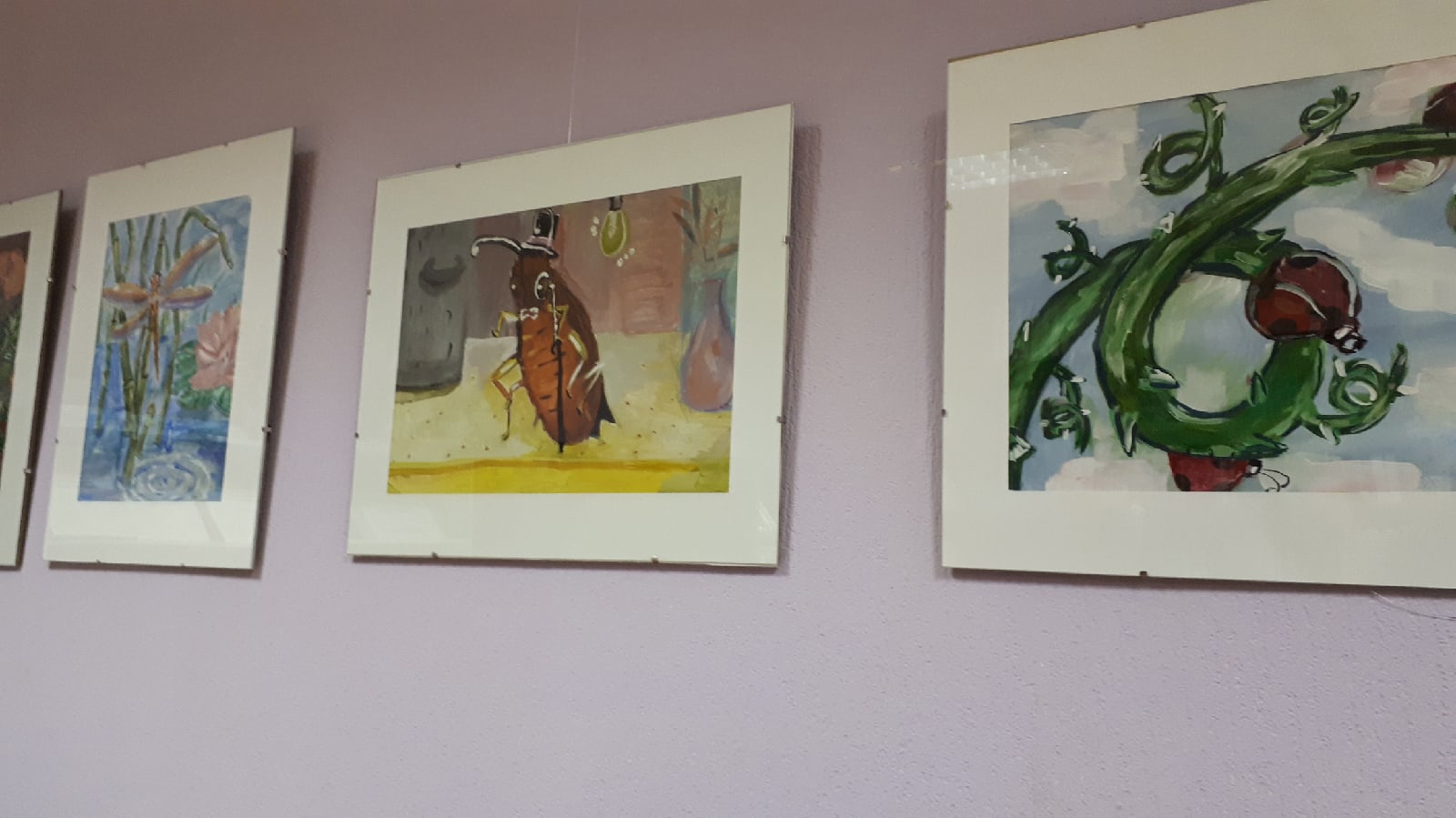 На выставке представлено более 30 экспонатов - это рисунки, выполненные в технике композиционных работ гуашью и карандашом, акварелью и акрилом, творческие поделки в технике сухое валяние, полимерной глины и необычные броши из бисера. Каждая работа имеет свое неповторимое очарование и детскую непосредственность, но сюжетная линия для всех - маленькие насекомые.