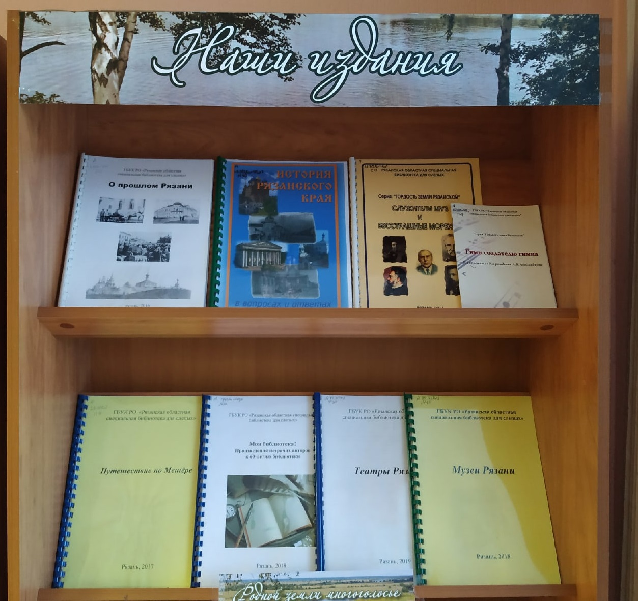В данный период выставка представлена двумя разделами: «Родной земли многоголосье» и «Рязанские писатели и поэты». В первом разделе представлены книги, посвящённые истории родного края (такие издания, как «О прошлом Рязани», «История Рязанского края в вопросах и ответах»), природе («Путешествие по Мещере»), знаменитых людях («Служители муз и бесстрашные мореходы»), культуре («Театры Рязани, «Музеи Рязани»).