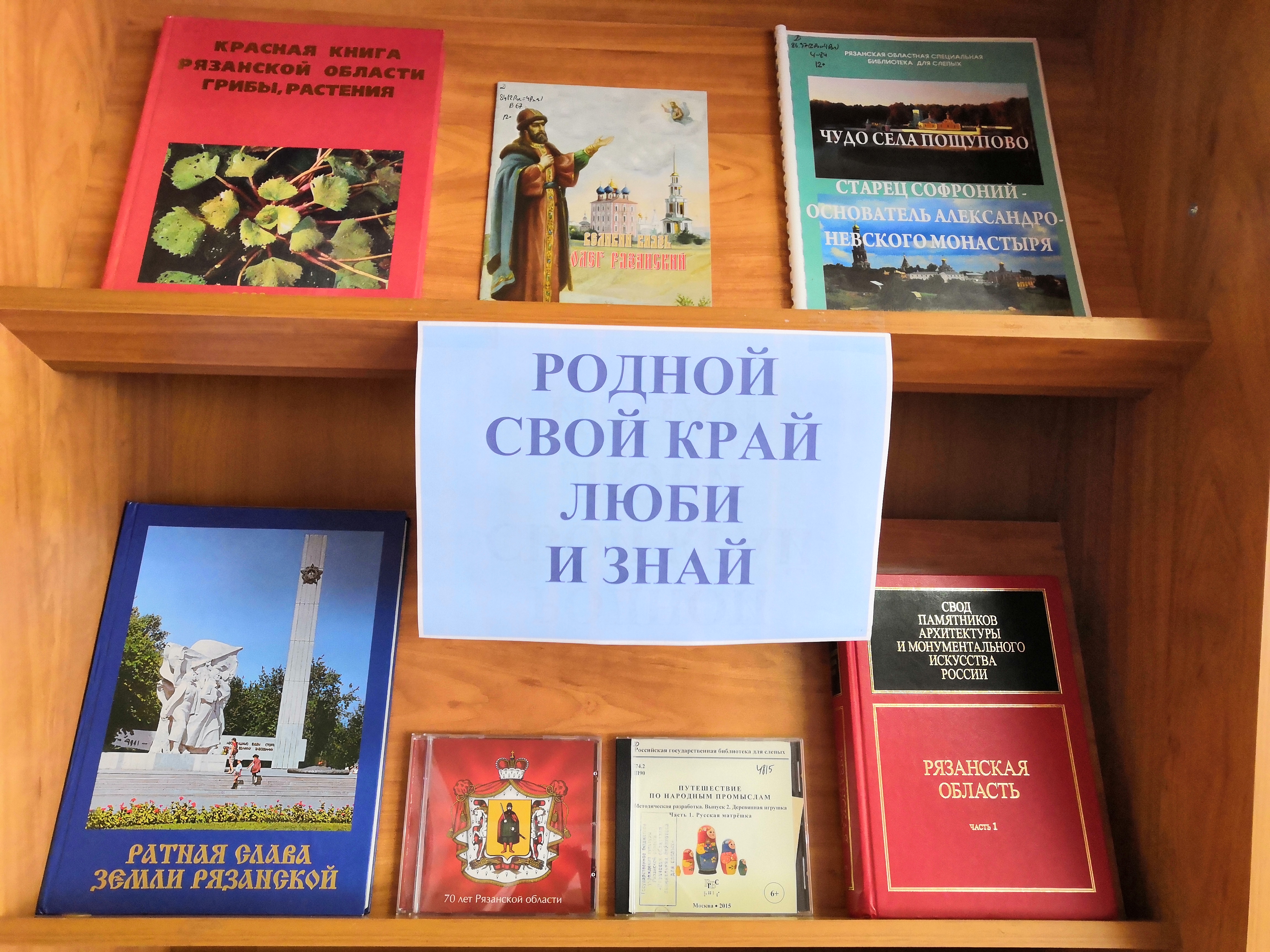 Невозможно любить Отечество, не зная своей малой родины, своего села, города, области. Рязанский край богат своей природой, историей, а главное, знаменитыми земляками, внесшими огромный вклад в мировую историю, науку и культуру. Узнать о Рязани и рязанцах ребята могут из изданий тифлоинформационного отдела нашей библиотеки.
