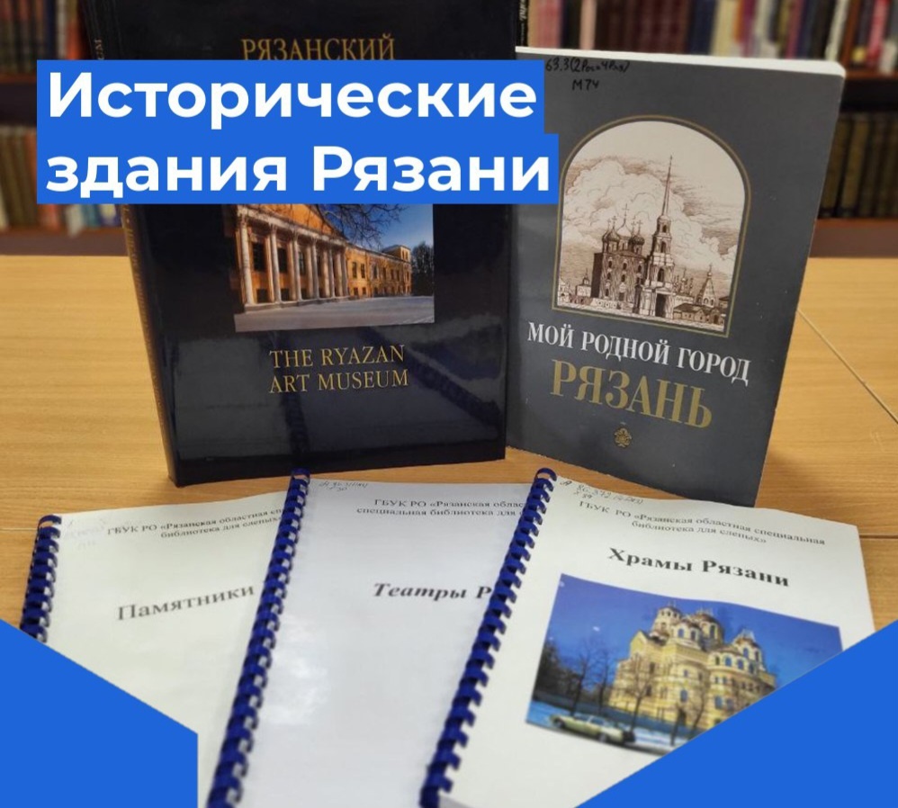 С 1 по 31 марта 2024 года в читальном зале Рязанской областной специальной библиотеки для слепых будет экспонироваться краеведческая книжно-иллюстративная выставка «Исторические здания города Рязани», из цикла «Рязанское Раздолье».