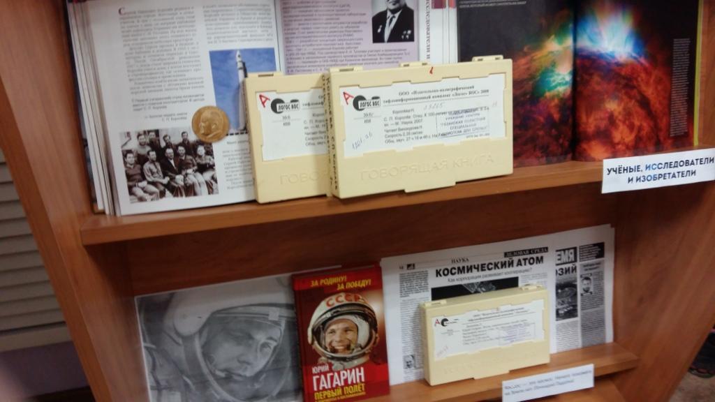 На выставке представлены книги на разных носителях, от "говорящих книг" и книг по Брайлю до статей из популярных журналов.
