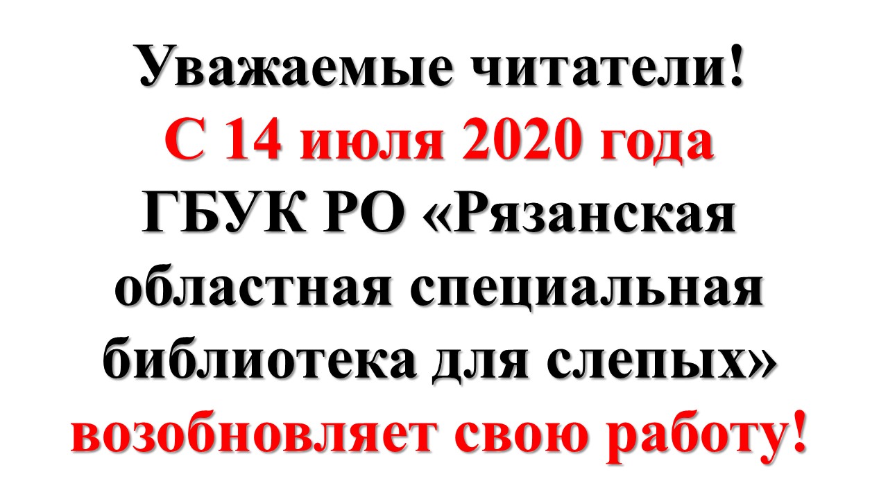 С 14 июля 2020 года Рязанская областная специальная библиотека для слепых возобновляет свою работу!Афиша