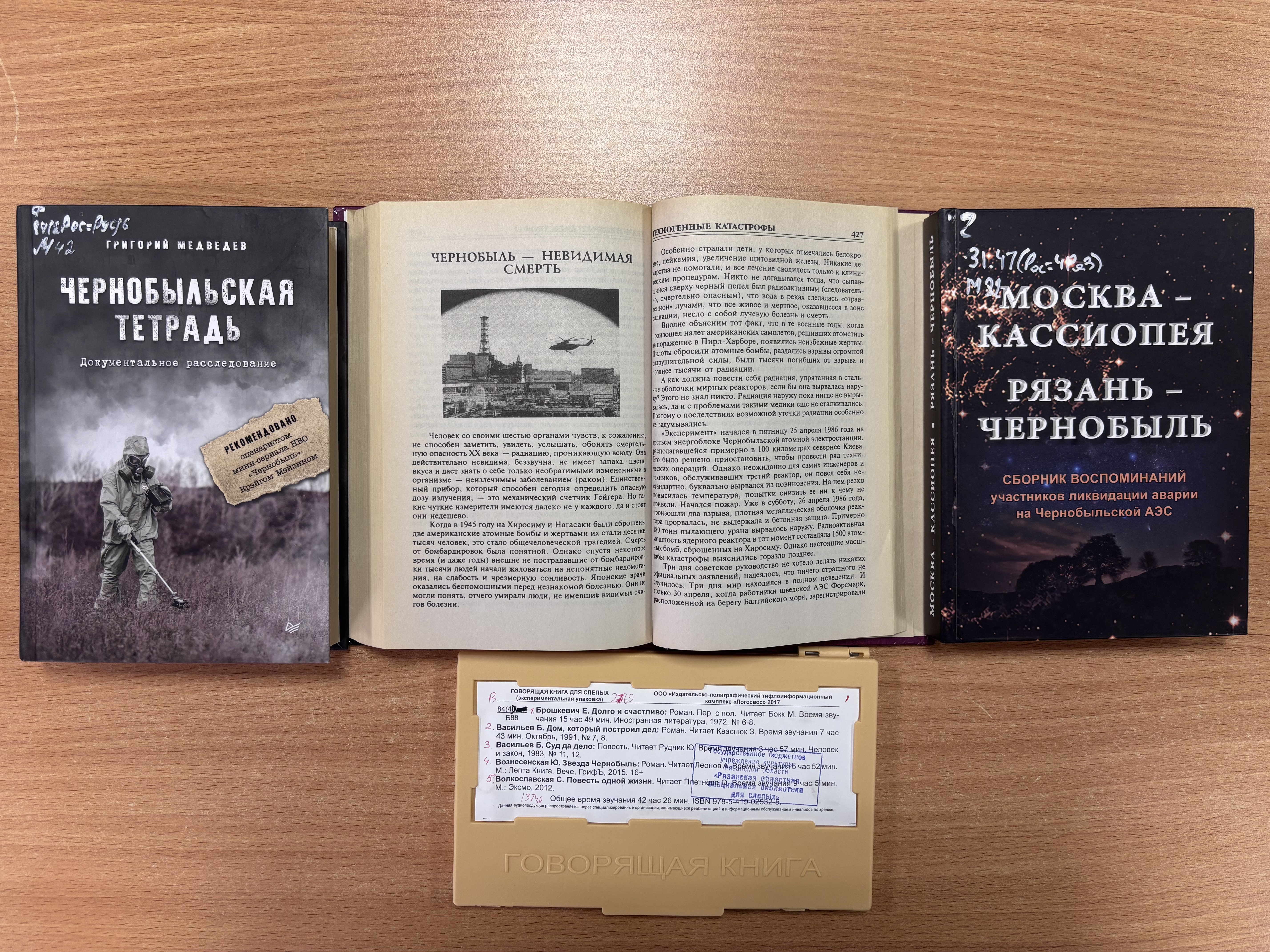 С 14 по 30 апреля 2026 года Рязанская областная специальная библиотека для слепых приглашает вас посетить книжно-иллюстративную выставку «Чернобыль — не гаснет свеча памяти», приуроченную к 40-й годовщине со дня катастрофы на Чернобыльской АЭС.