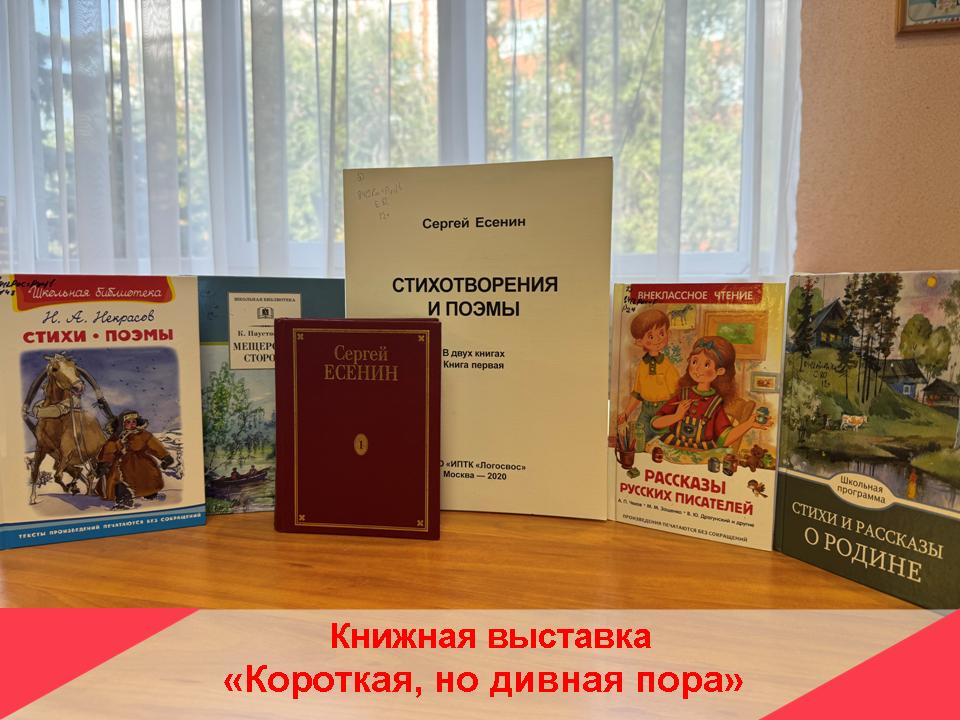С 16 по 30 сентября 2024 года в детском отделе Рязанской областной специальной библиотеки для слепых будет экспонироваться книжная выставка «Короткая, но дивная пора». На выставке будут представлены стихи и рассказы об осени, изданные на различных носителях: РТШ, плоскопечатные, крупношрифтовые, компакт-диски и флеш-карты.