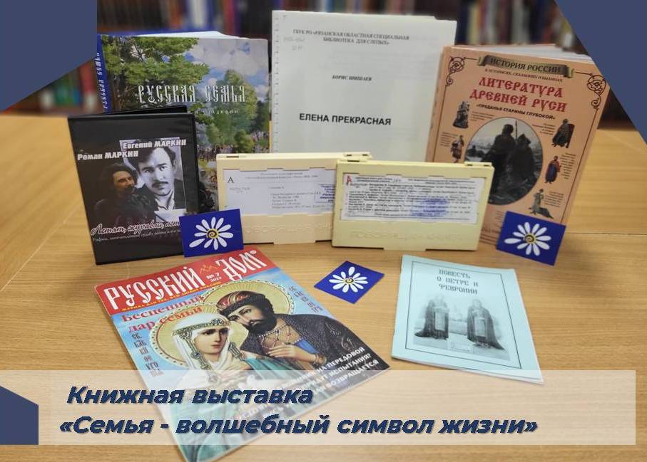 С 3 по 25 июля 2024 года в читальном зале Рязанской областной специальной библиотеки для слепых будет экспонироваться книжно – иллюстративная выставка «Семья – волшебный символ жизни».