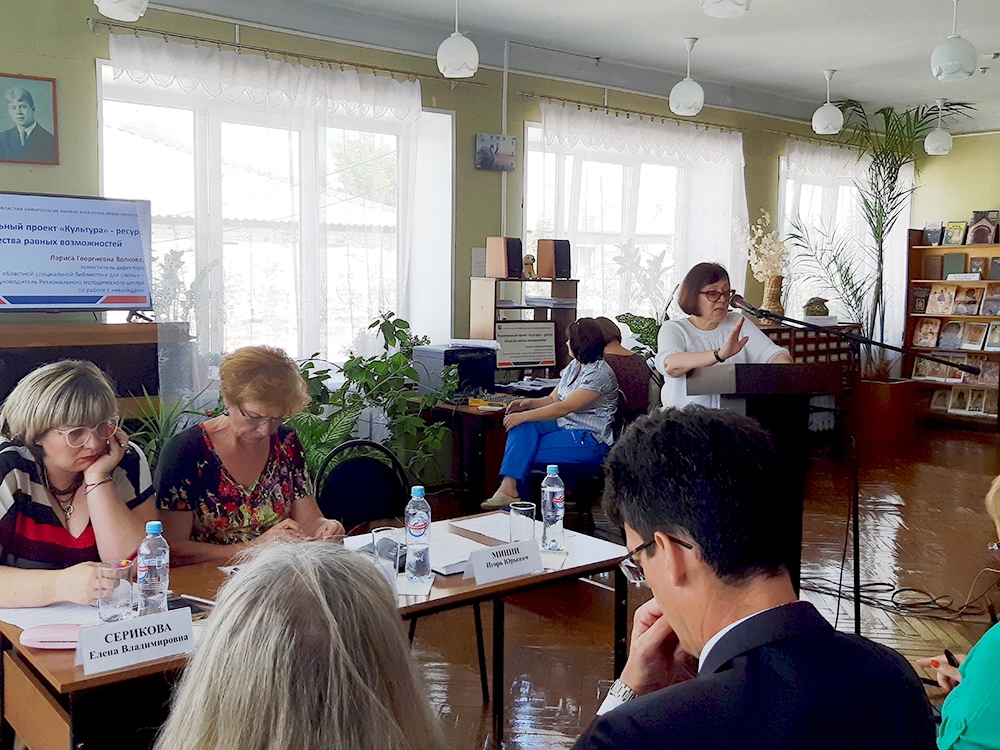 «Национальный проект «Культура» – ресурс общества равных возможностей» – тема выступления Л.Г. Волковой, заместителя директора Рязанской областной специальной библиотеки для слепых – руководителя Регионального методического центра по работе с инвалидами. Сотрудники библиотек обязаны осознавать не только социальную значимость работы с инвалидами, но и свою органичную причастность к этому процессу. Также необходимо постоянно совершенствовать профессиональные компетенции библиотечных специалистов, эффективнее выстраивать работу с общественными объединениями инвалидов, находить партнеров среди некоммерческих организаций, вовлекать инвалидов в культурно-просветительскую деятельность библиотек.