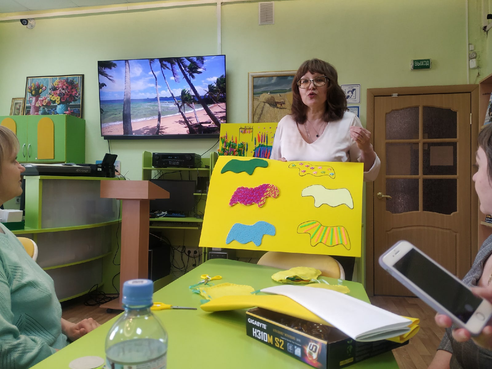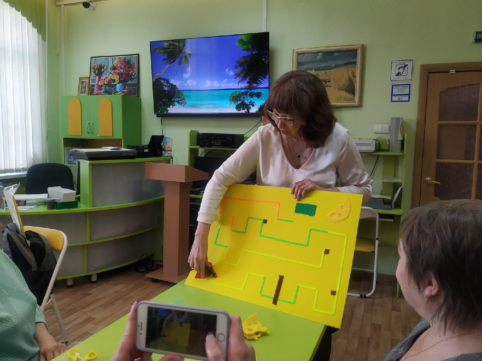 В заключение семинара был проведен сеанс психологической разгрузки и мобилизации с использованием аудиовизуального программно-аппаратного комплекса Диснет, а также мастер-класс «Создание тактильно-сенсорного панно своими руками».