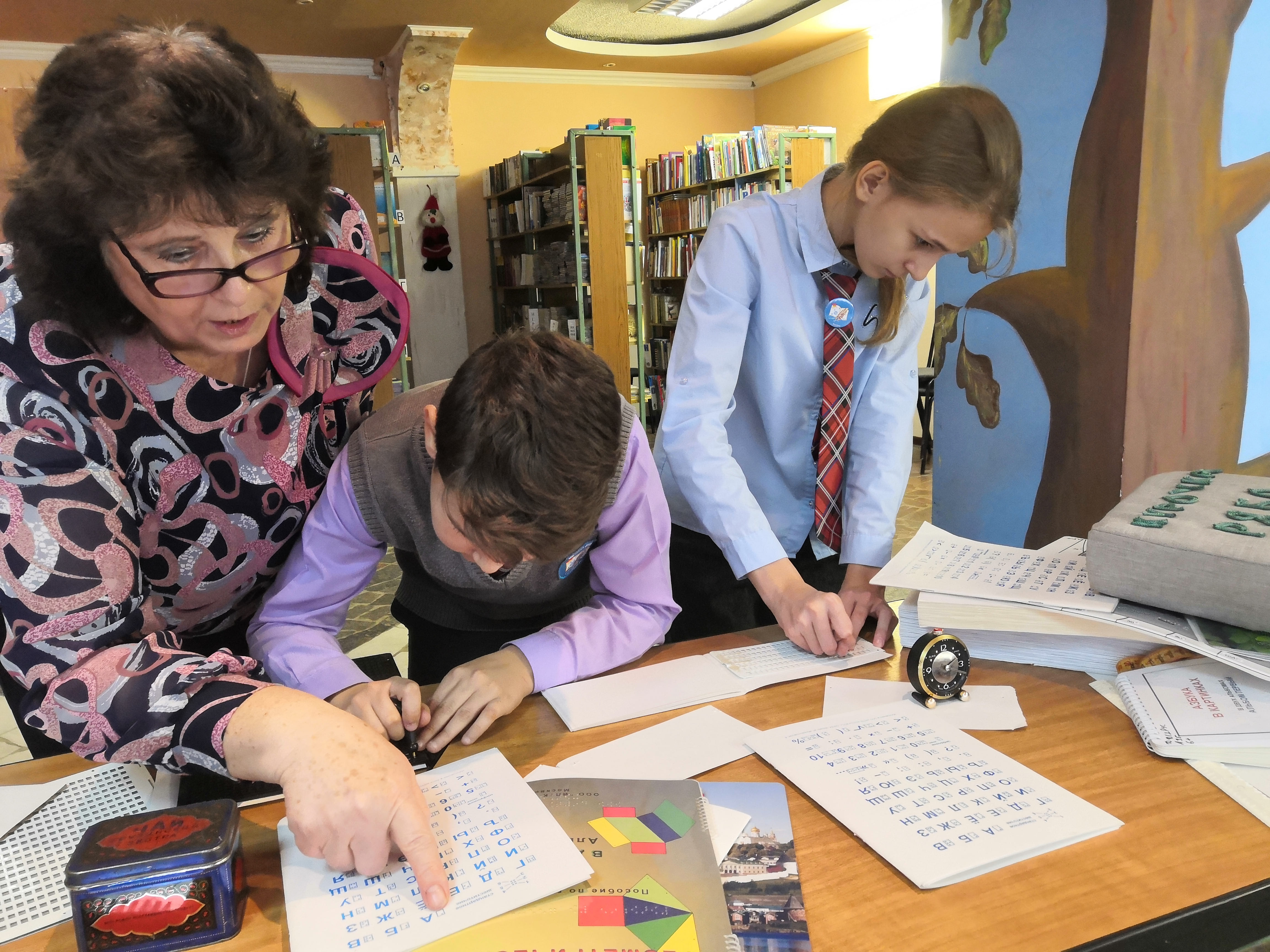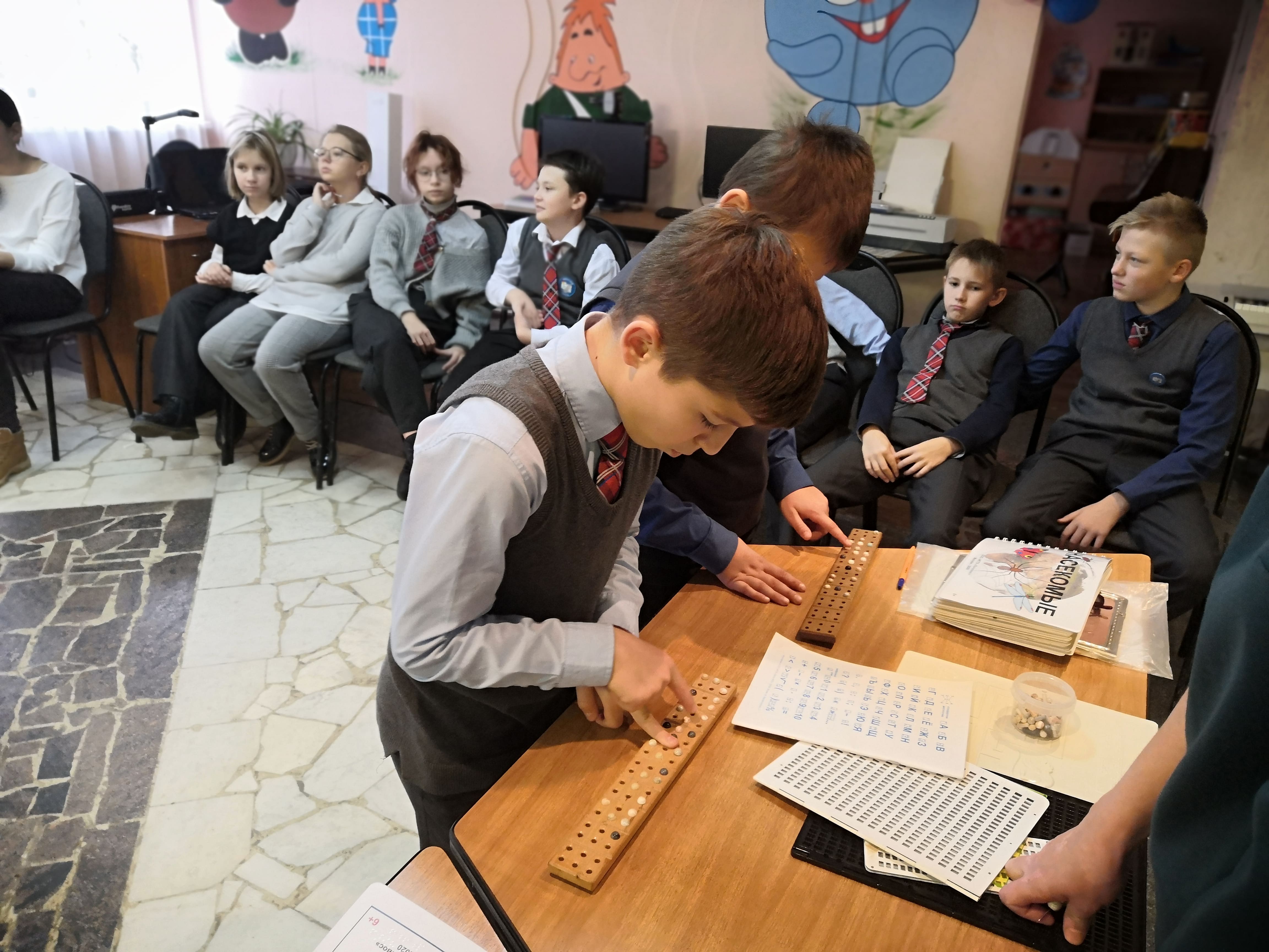 Ребята познакомились с тифлоприборами и рельефными книгами, попробовали читать и писать по Брайлю.