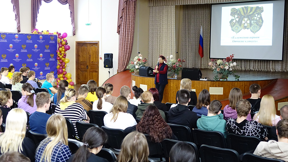8 декабря 2023 года в Михайловском экономическом колледже-интернате прошёл урок патриотизма, посвящённый Дню героев Отечества. Главный библиотекарь Регионального методического центра по работе с инвалидами Оксана Алексеевна Смирнова рассказала студентам об истории возникновения этого праздника, статусе ордена Георгия Победоносца, некоторых его кавалерах.