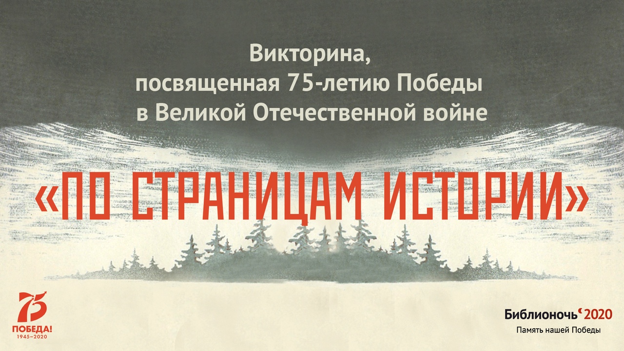 Предлагаем Вам принять участие в викторине «По страницам истории», посвященной 75-летию Победы в Великой Отечественной войне и проверить свои знания об одном из самых важных исторических событий для нашей страны.