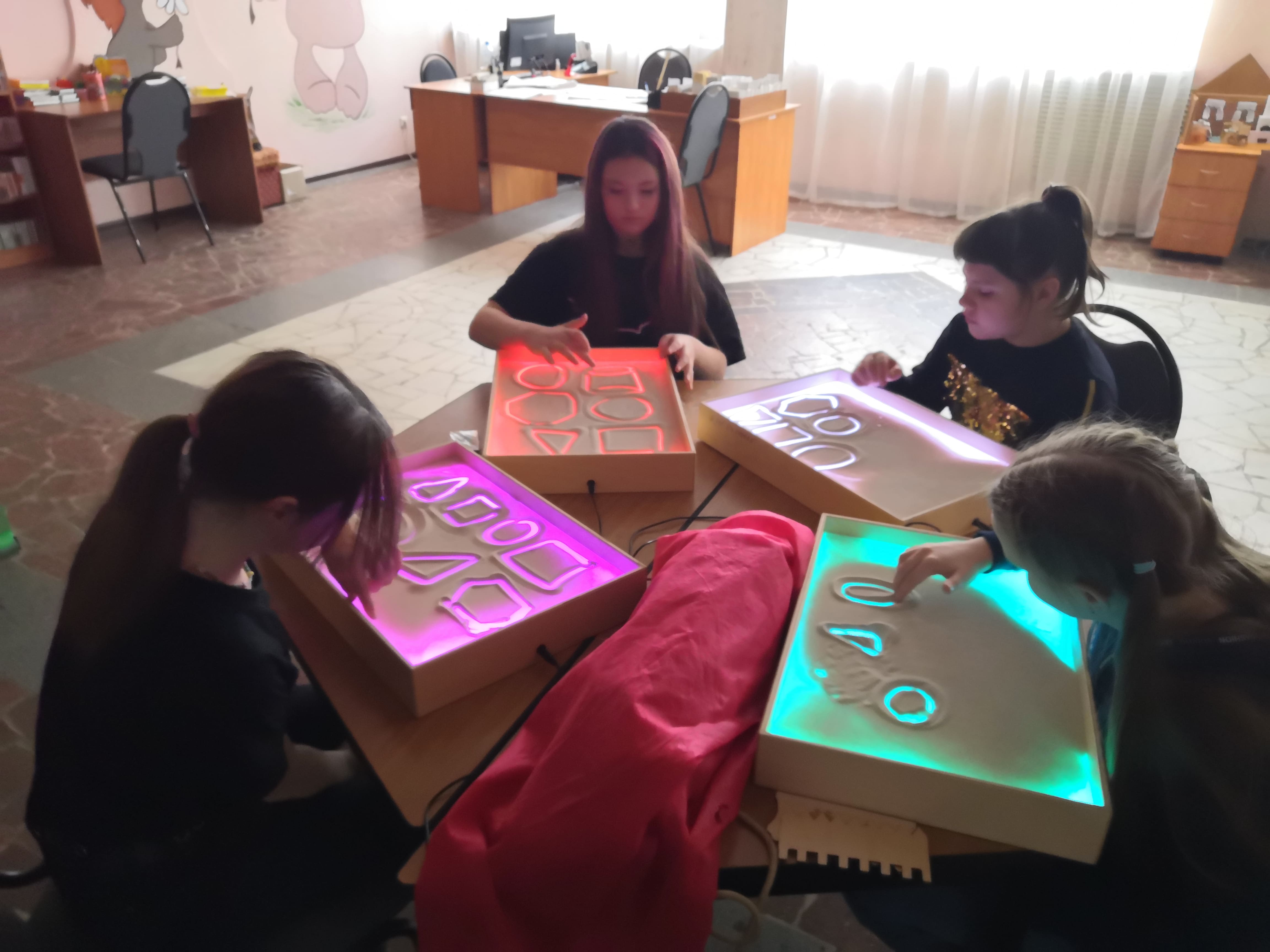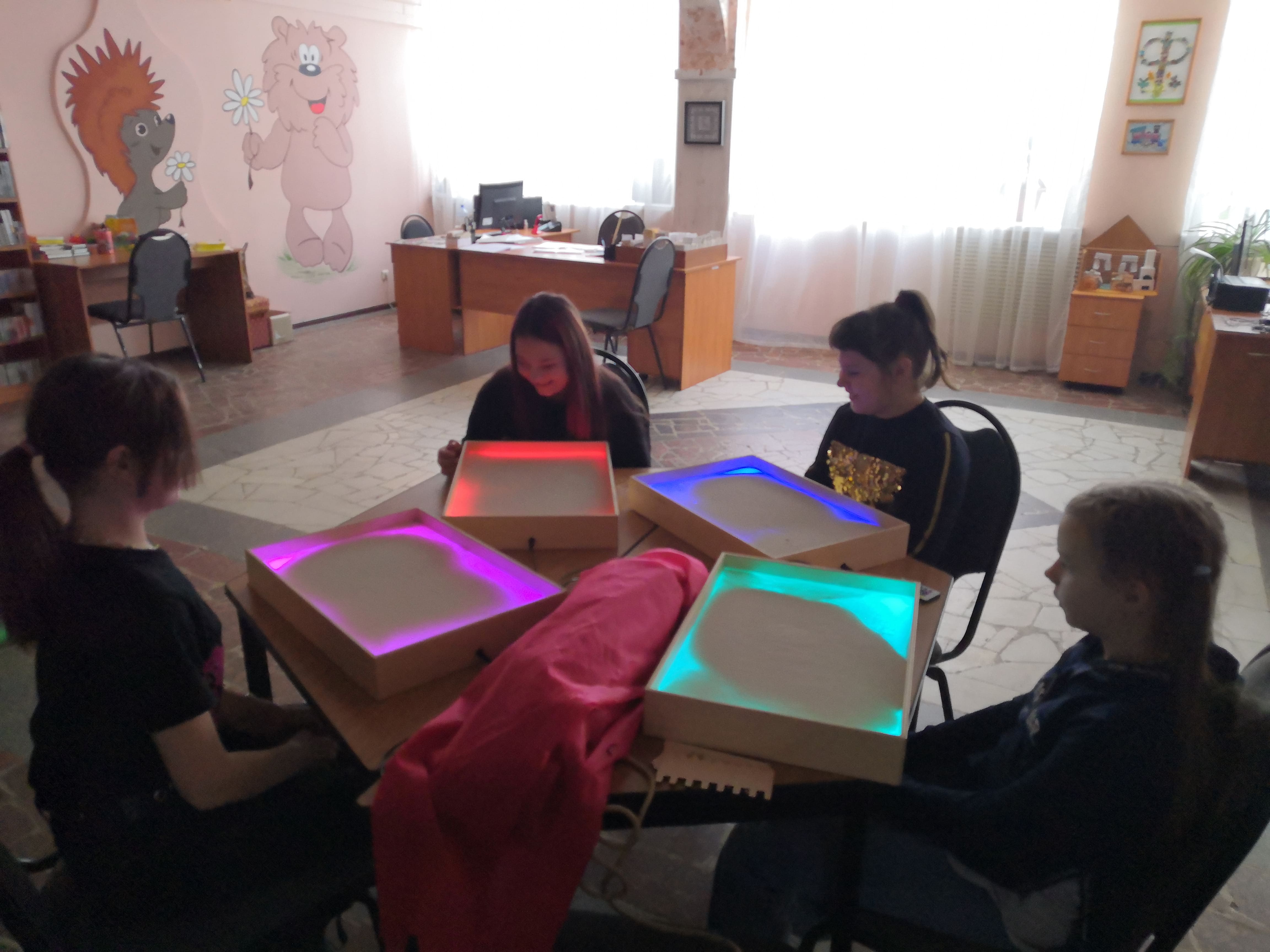 25 марта 2023 года в детском отделе Рязанской областной специальной библиотеки для слепых прошло занятие кружка «Песочная радость».