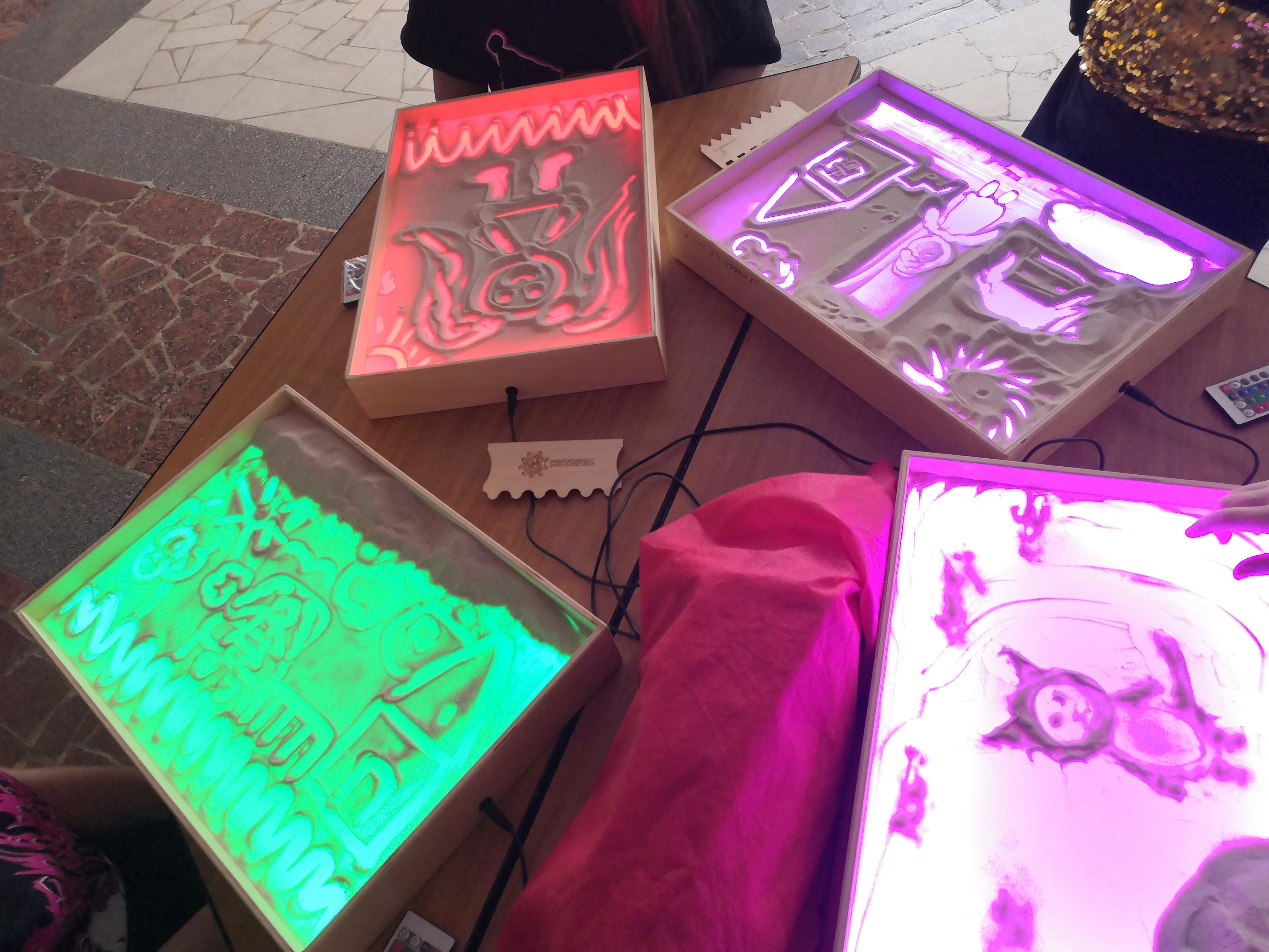 Дети продолжат знакомиться с секретами рисования с помощью песка. Рисуя на песочных планшетах, ребята избавляются от отрицательных эмоций, испытывают приятные тактильные ощущения.