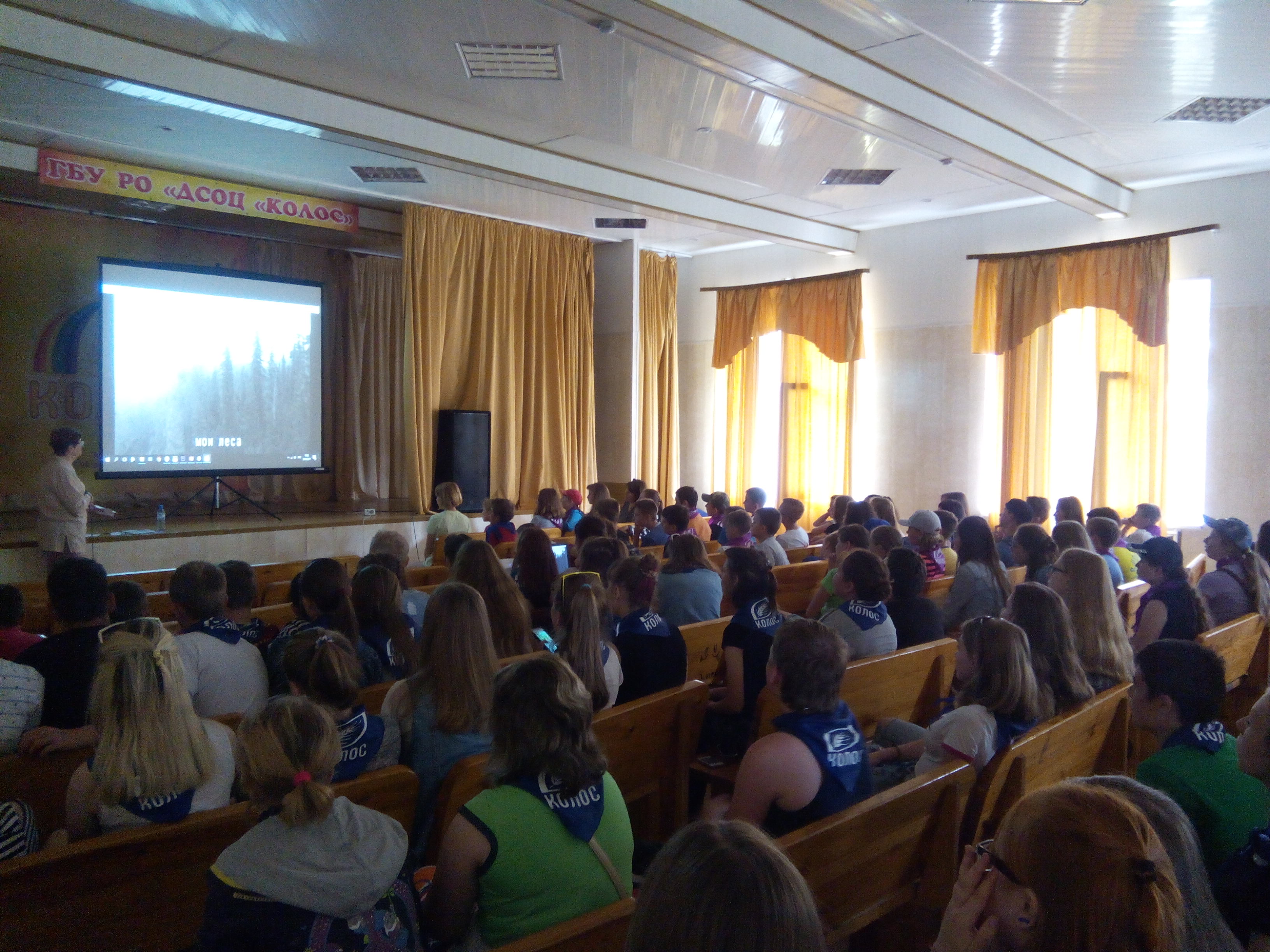 Старшие отряды смены прослушали медиалекцию «Живая планета», из которой они узнали о теории живой и разумной Земли, познакомились с основными экологическими проблемами, связанными с человечеством: перенаселением, загрязнением воздуха, воды, истреблением лесов и животных, и т.д. Юные слушатели были поражены страшными цифрами статистики, говорящими о бездумном уничтожении биосферы планеты. Сотрудник центра рассказал о методах исправления создавшейся в мире ситуации. Ребята оказались неравнодушными людьми и после окончания мероприятия задавали много вопросов по поводу услышанного.