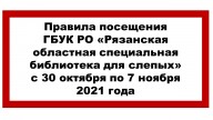 Правила посещения ГБУК РО «Рязанская областная специальная библиотека для слепых» с 30 октября по 7 ноября 2021 года