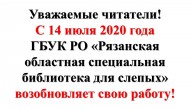 С 14 июля 2020 года Рязанская областная специальная библиотека для слепых возобновляет свою работу!
