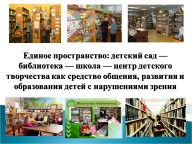 Региональный семинар «Единое пространство: детский сад-библиотека-школа-центр детского творчества как средство общения, развития и образования детей с нарушениями зрения»