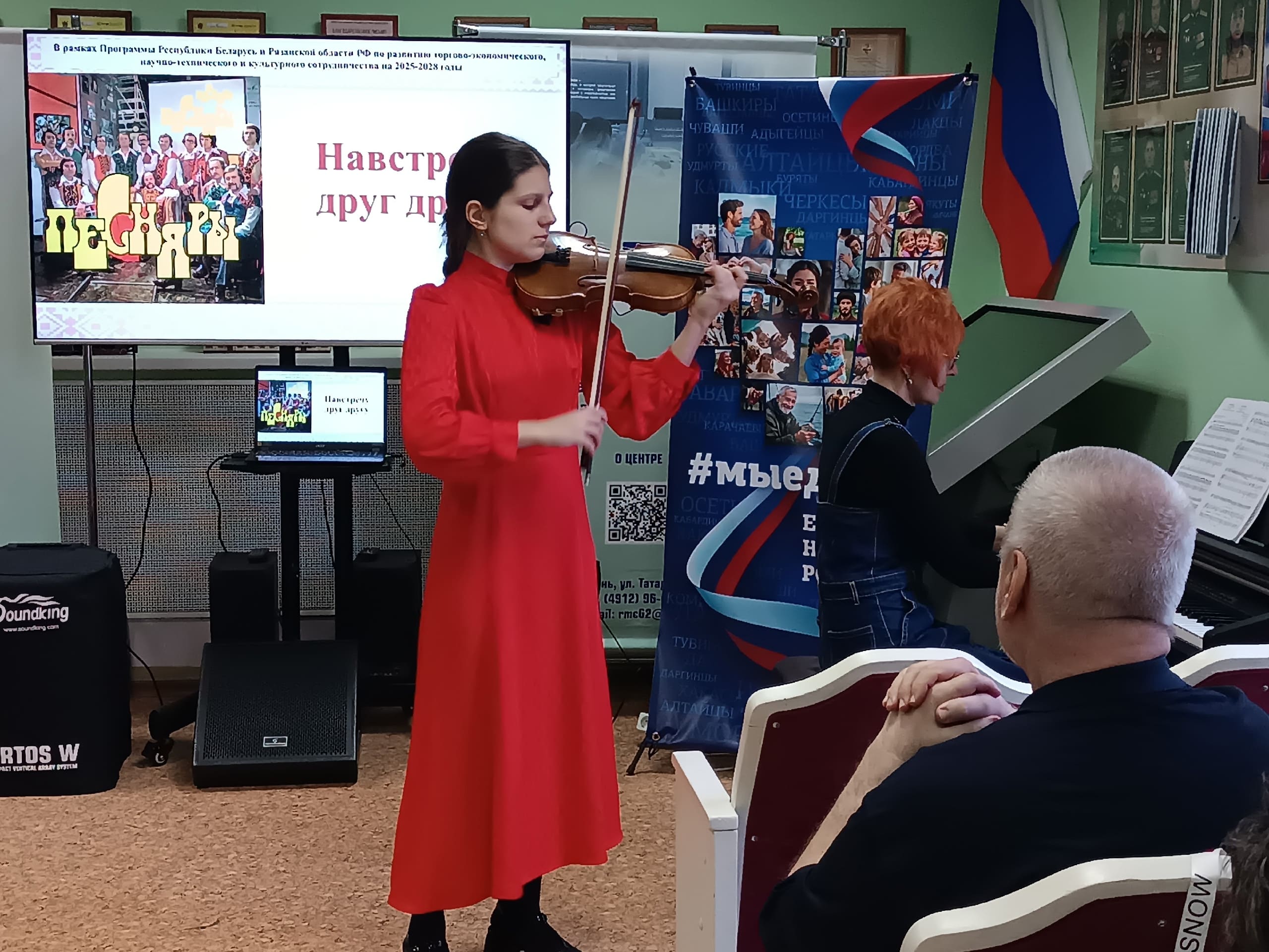 2 апреля ежегодно отмечается День единения народов Беларуси и России. Этой дате и Году единства народов России был посвящён музыкальный вечер «Навстречу друг другу». Он прошёл в рамках Программы Республики Беларусь и Рязанской области Российской Федерации по развитию торгово‑экономического, научно‑технического и культурного сотрудничества на 2025–2028 годы.