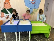 На занятии ребята услышали сказку В. Сутеева «Под грибом», отгадали загадки о грибах, рассказали о своих лесных находках и узнали интересные факты о грибах. Настоящий свежий подосиновик вызвал у детей искренний восторг. А потом ребята научились рисовать на песочных планшетах симпатичные грибы боровики, которые в некоторых областях России называют также белыми.