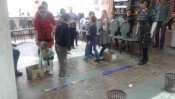 Потом дети услышали рассказ о традициях празднования Масленицы на Руси, узнали о названиях дней Масленичной недели. Как и заведено с давних времён, наступило время весёлых состязаний. Ребята бегали парами со связанными ногами, носили на ложках снежки, соревновались в меткости, бросая снежки в цель, состязались в беге верхом на метле, отгадывали загадки.