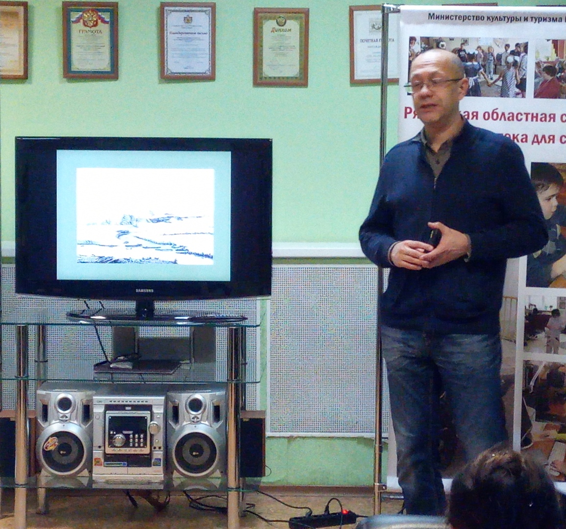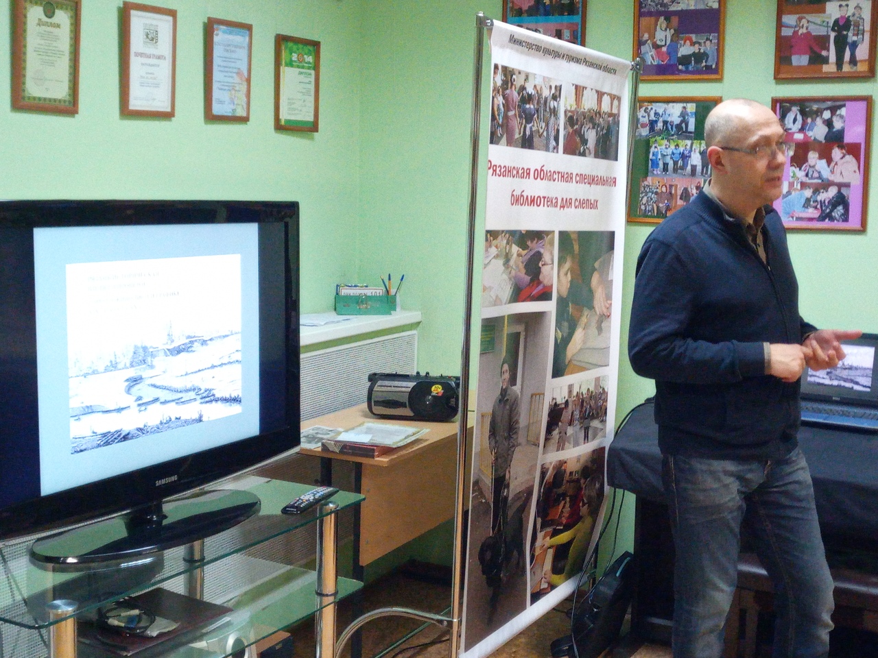 Вечер 5 марта 2019 года в клубе общения «Диалог на равных» в очередной раз был посвящён краеведческой теме. Заместитель директора по научно-методической работе Государственного архива Рязанской области, кандидат исторических наук, краевед Дмитрий Юрьевич Филиппов продолжил знакомить членов клуба с циклом медиалекций «Рязань губернская». В этот раз встреча называлась «Рязань в живописи и рисунке XIX века».
