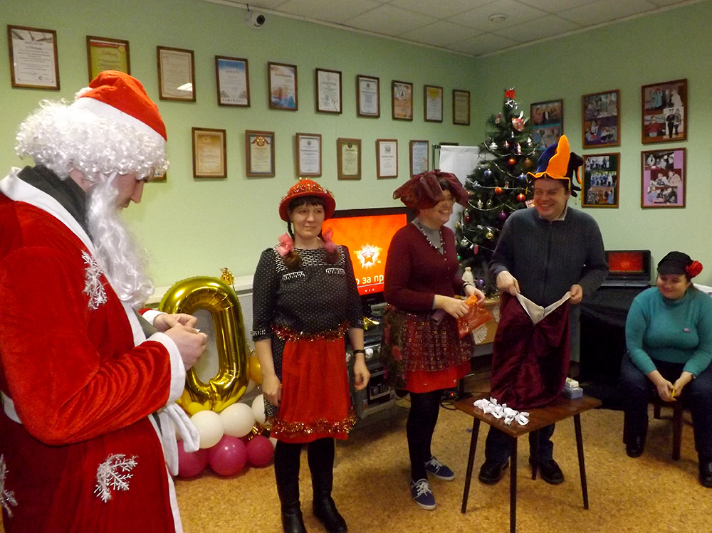 Клубный Дед Мороз раздал всем предсказания на 2019 год и провёл беспроигрышную лотерею с "волшебным барабаном". Завершился праздник, как всегда, общей фотографией.