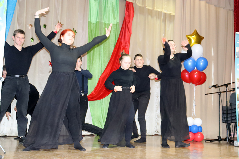 Танцевальные композиции ансамбля «Новый стиль школы-интерната «Вера» и группы «Контрасты» школы № 23 стали ярким финалом программы. На протяжении всего мероприятия помощь на сцене оказывали воспитанники инклюзивного военно-патриотического клуба «Десантное братство».