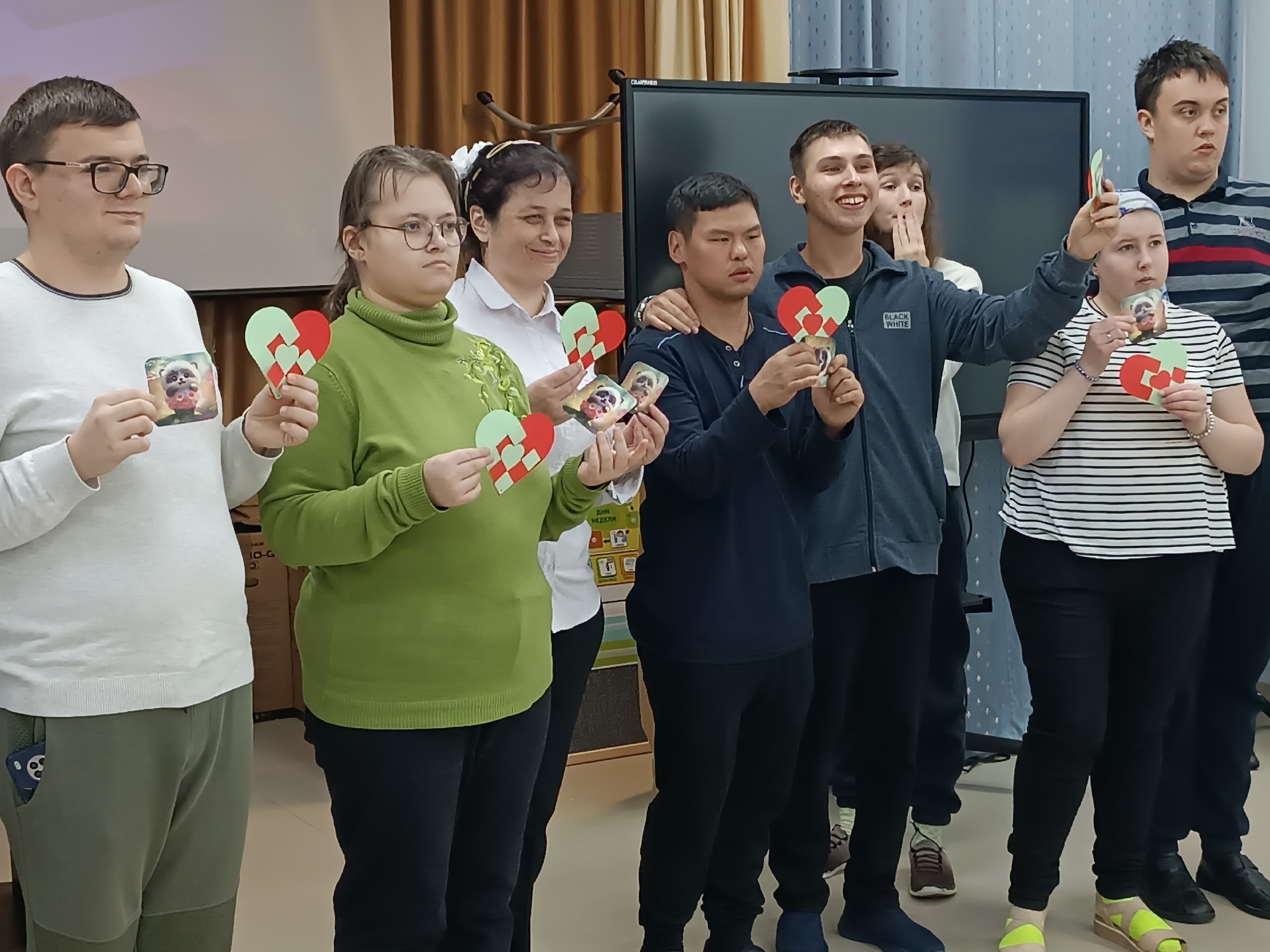 В заключение программы дети посмотрели мультфильм «Трям! Здравствуйте!» и получили в подарок бумажные сердца для подарков любимым людям.