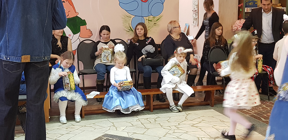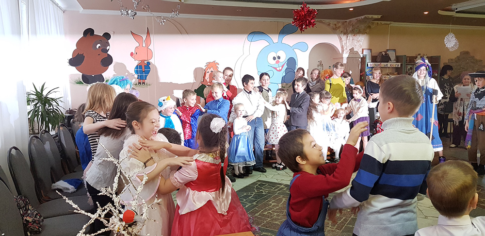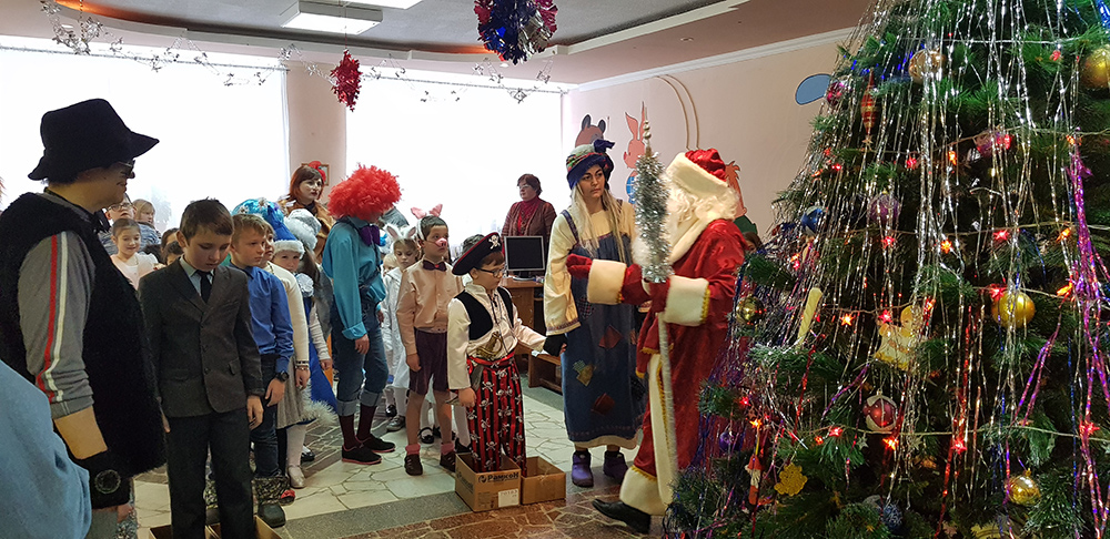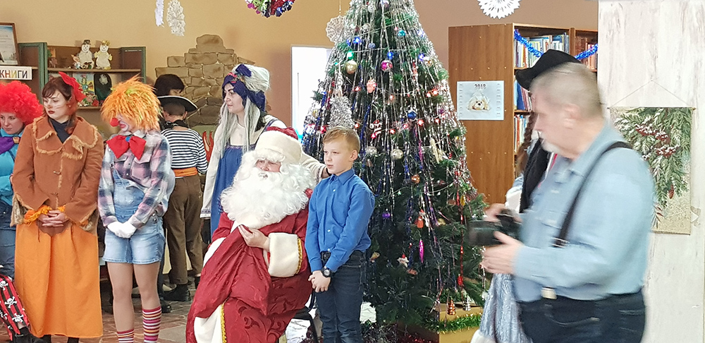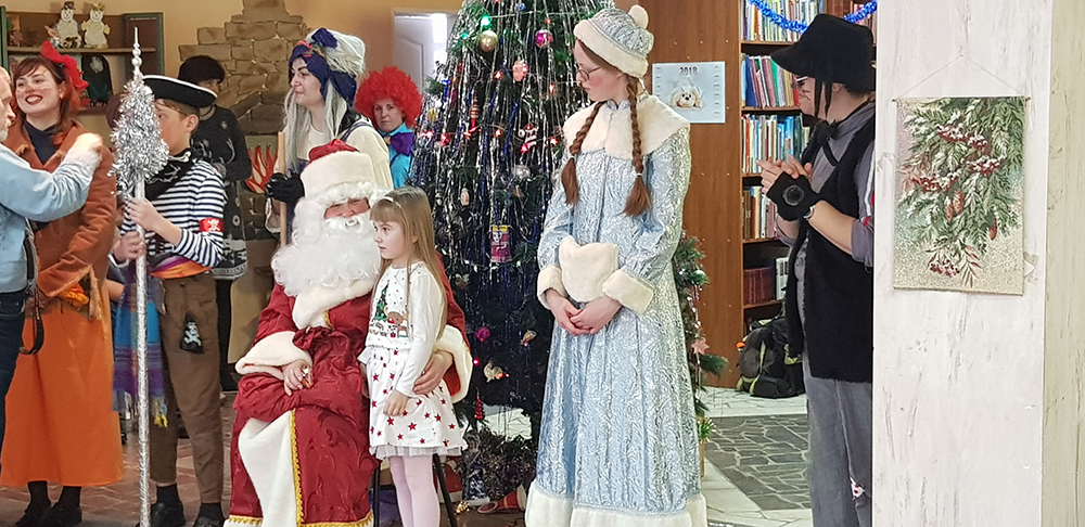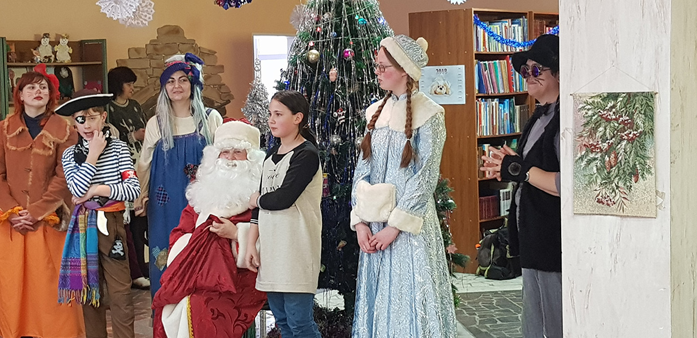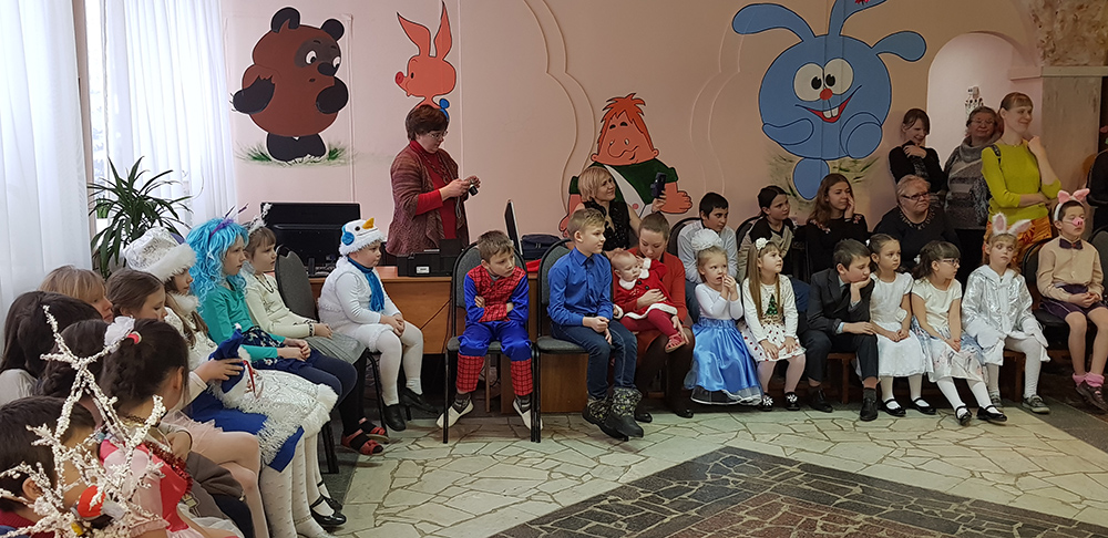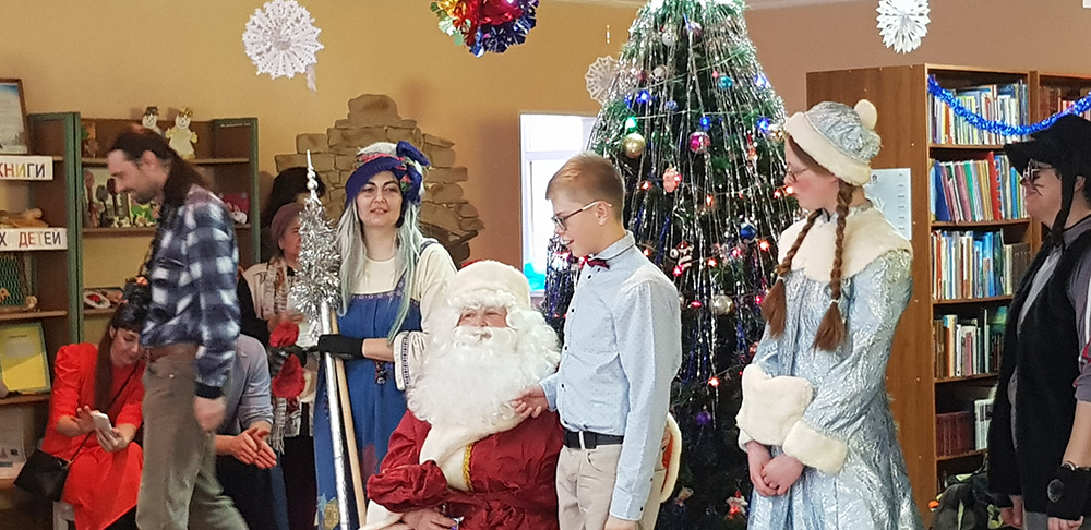 В начале мероприятия наших юных читателей и их родителей поздравила с наступающим праздником директор библиотеки Ольга Александровна Лунёва. Затем наша постоянная читательница Алёна Гриценко показала ребятам свою новую сказку для кукольного театра «По щучьему веленью». А потом Баба-Яга, клоуны, пират, лиса Алиса и кот Базилио увлекли ребят в настоящее сказочное новогоднее приключение. Девчонки и мальчишки преодолели все трудности и дождались Деда Мороза и Снегурочку. Дети водили хороводы, танцевали, угадывали мелодии, бегали в коробках, скакали на шарах, а потом устроили домашний концерт из заранее выученных стихов и песен. Затем на празднике появился символ наступающего года – весёлый поросёнок, сказочные герои поздравили ребят с Новым годом и вручили подарки.