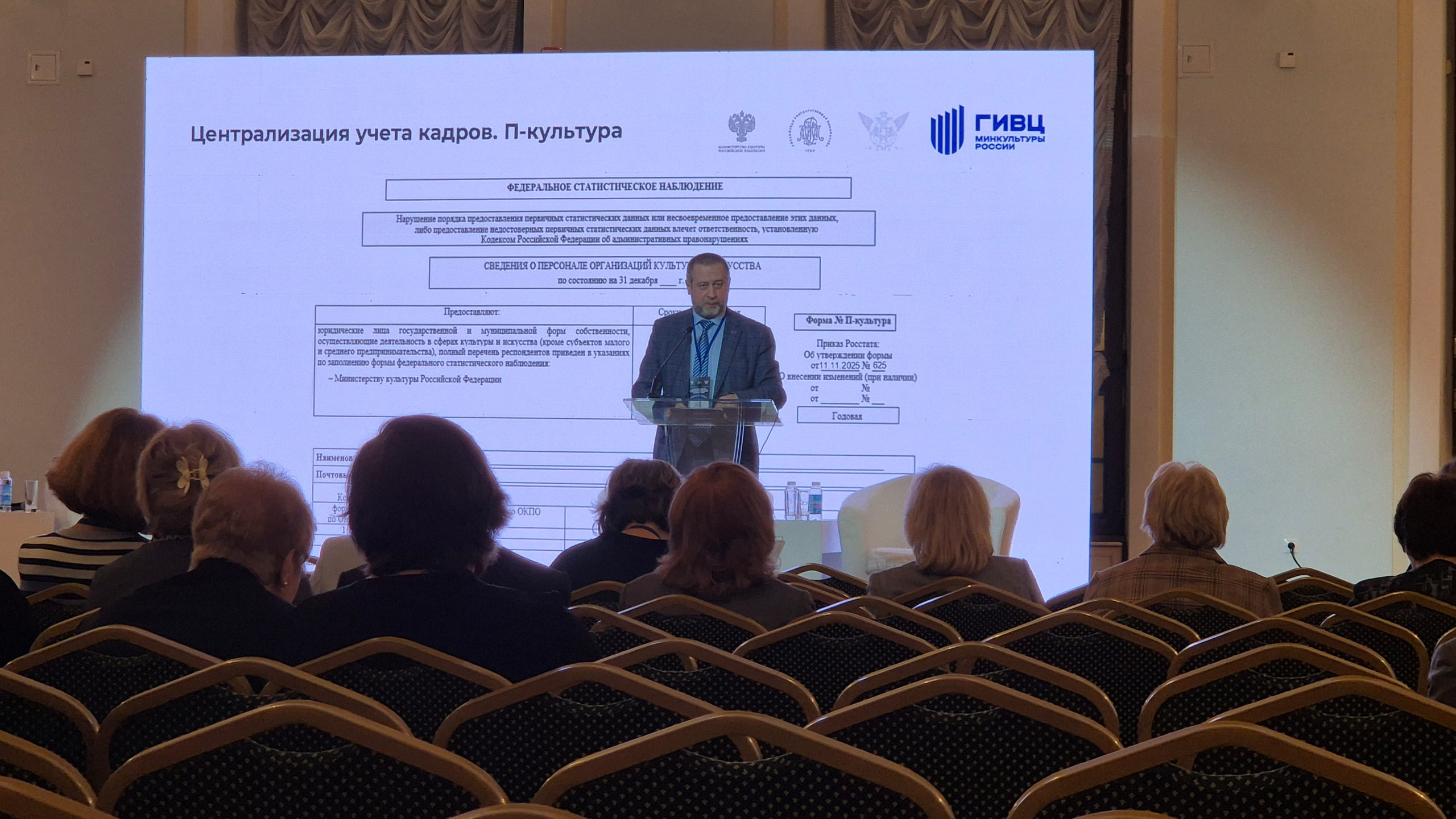 Руководитель управления статистики и аналитики ГИВЦ Министерства культуры РФ Мокров С.С. представил результаты мониторинга деятельности библиотек, а также нововведения, которые ожидают библиотеки при составлении отчетности за 2025 год.