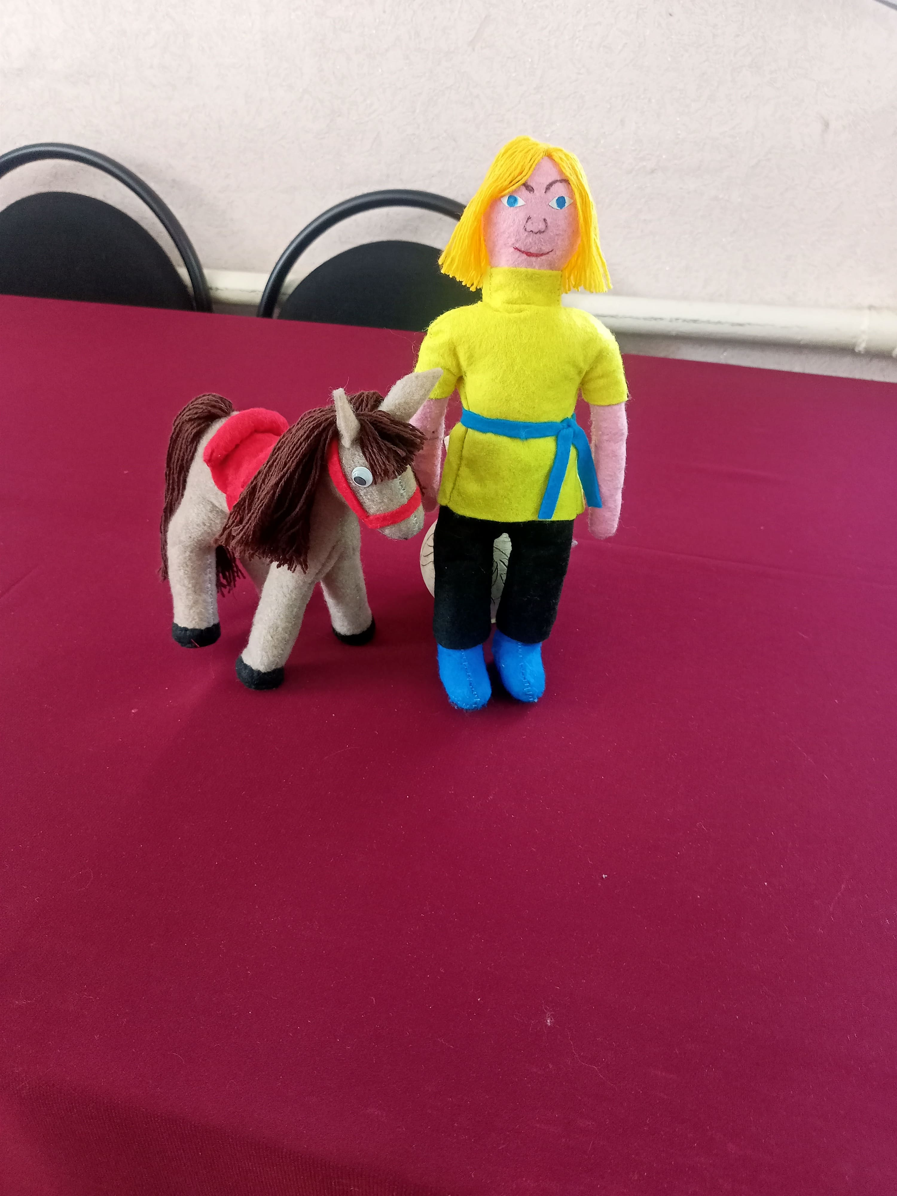 Творчество – это прекрасный способ выразить свои чувства и эмоции, поделиться своей радостью с окружающими. По сложившейся доброй традиции Екатерина Алексеевна и Татьяна приняли участие в творческом проекте «Путешествие с Коньком-Горбунком». Какую поделку мастерить, сомнений не было: конечно, конька и Ивана. Продумали материал (фетр, холофайбер, вязальные нитки). Так из-под их умелых рук появился задорный конёк-горбунок, словно сошедший со страниц сказки. Каждая деталь продумана до мелочей: развивающаяся грива, лукавый взгляд и вздернутый носик выдают его неукротимый нрав. Рядом с ним, конечно же, Иван, выполненный в технике сухого валяния. В его облике чувствуется простота и доброта.