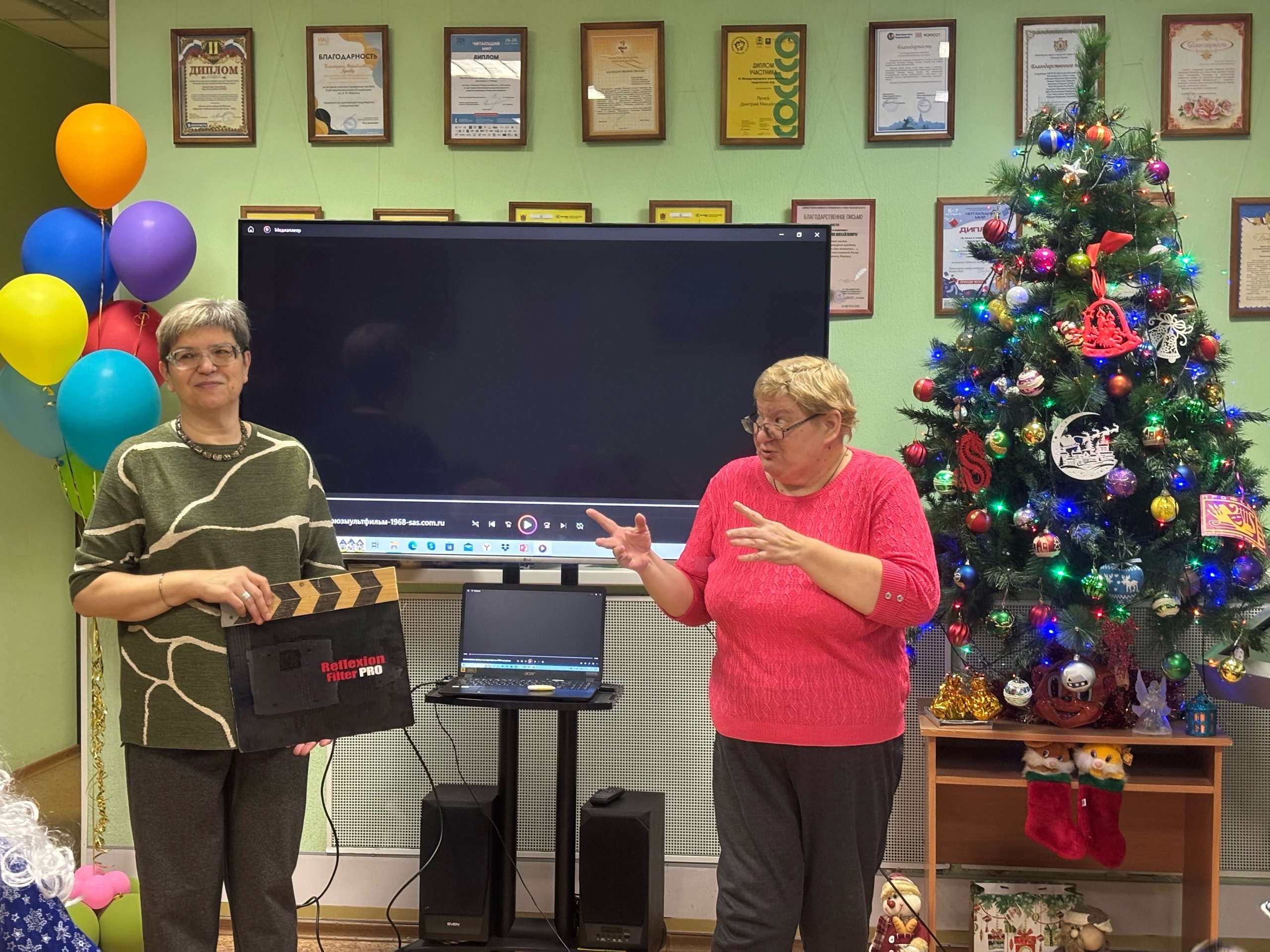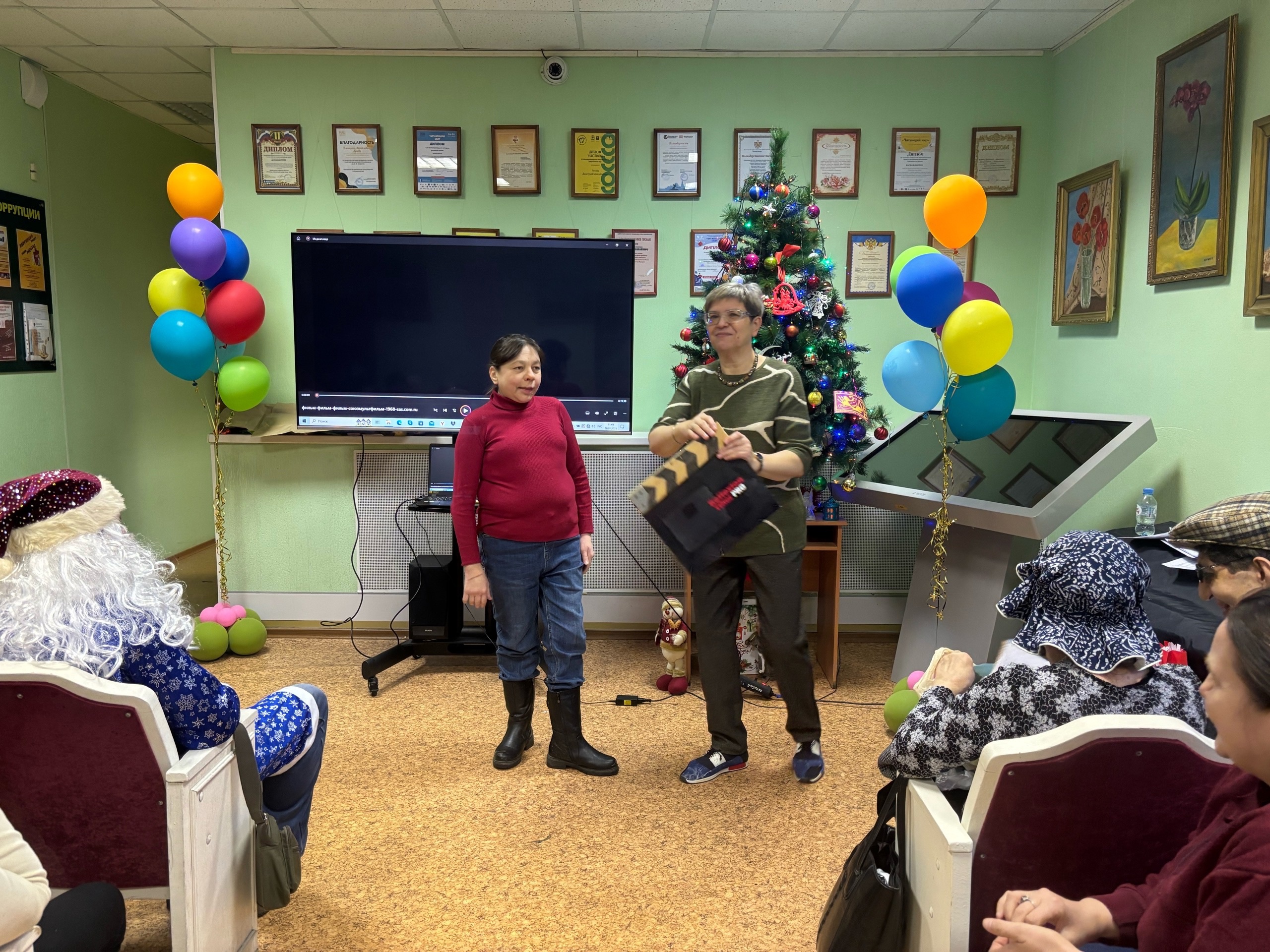 Программу продолжили весёлые игры и конкурсы на тему советского кино, которые доставили много удовольствия членам клуба. Завершилось мероприятие новогодними предсказаниями и просмотром комедии «Ничего не вижу, ничего не слышу».