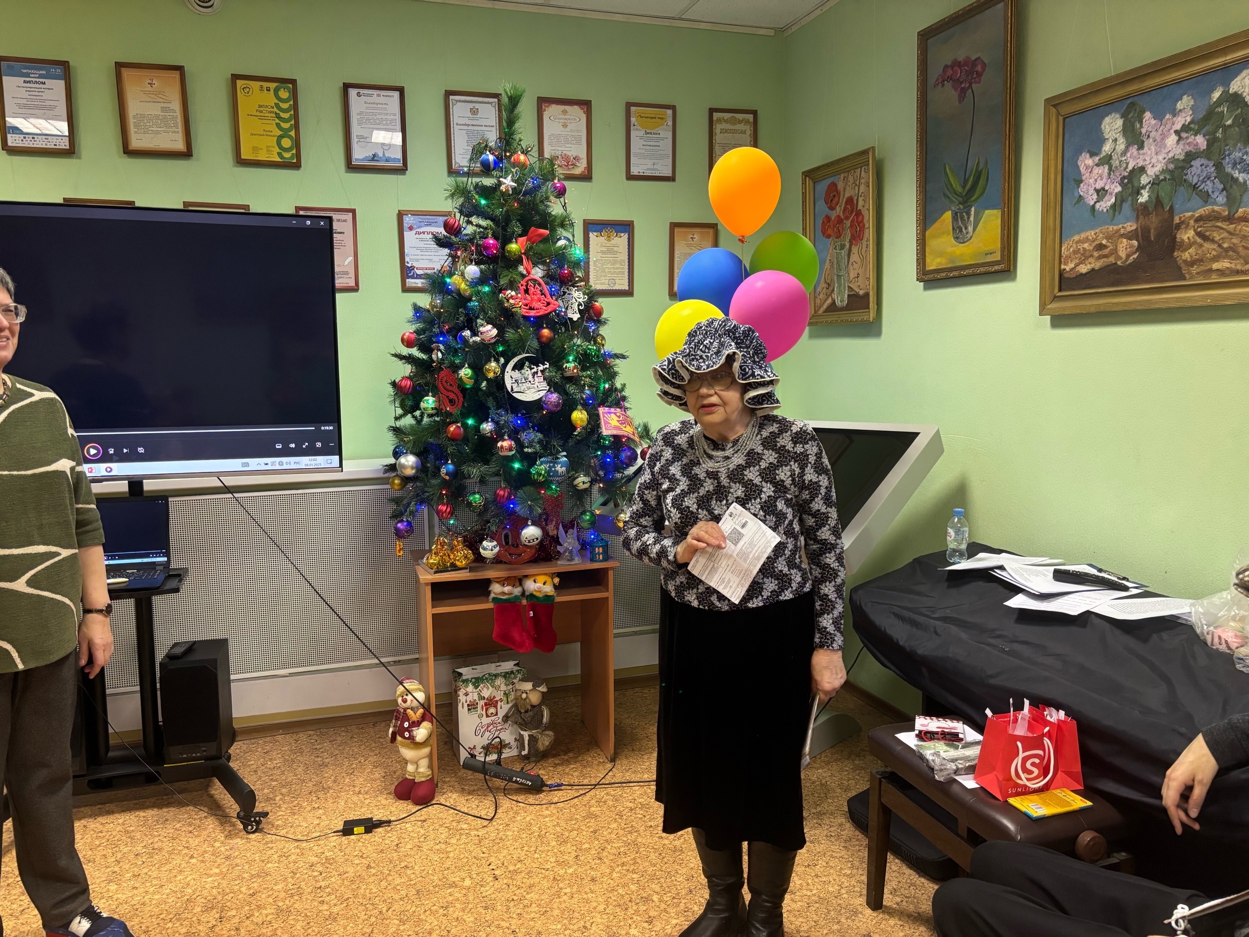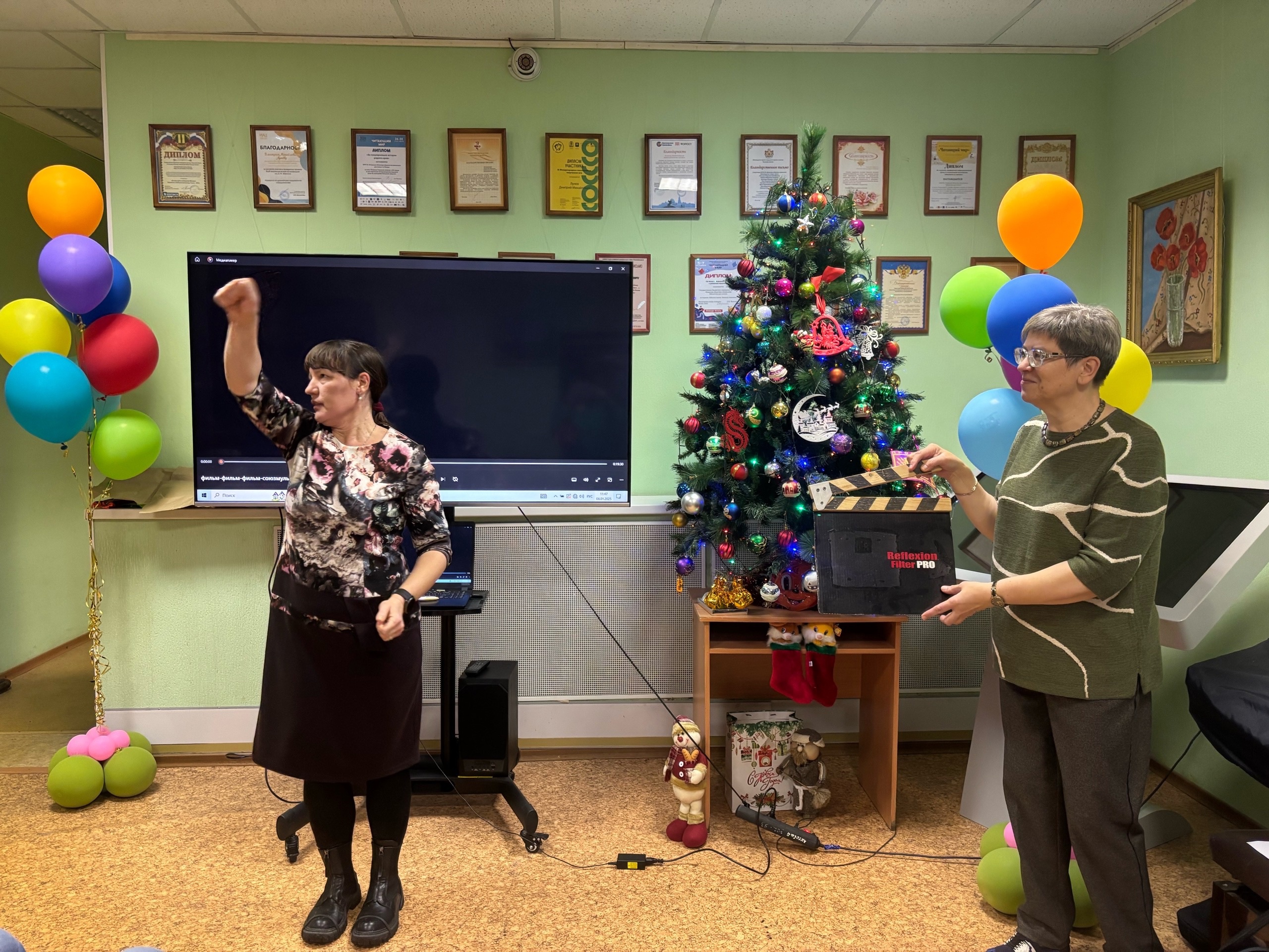 Как всегда весело отметили наступление нового 2025 года участники клуба общения «Диалог на равных». 8 января члены клуба встретились на «съемочной площадке» в библиотеке, где поговорили о кино, экранизациях произведений русской литературы. Какие профессии существуют в мире кино, как узнать фильм по фразе или песне из него – на эти и многие другие вопросы отвечали участники литературно-игровой программы «Внимание, мотор!». Затем были представлены домашние задания, где необходимо было сделать номер – представление литературного героя, а присутствующие должны были его отгадать. В номерах-загадках появлялись кот учёный, черепаха Тортилла, Отсап Бендер и другие герои экранизаций произведений русской литературы.