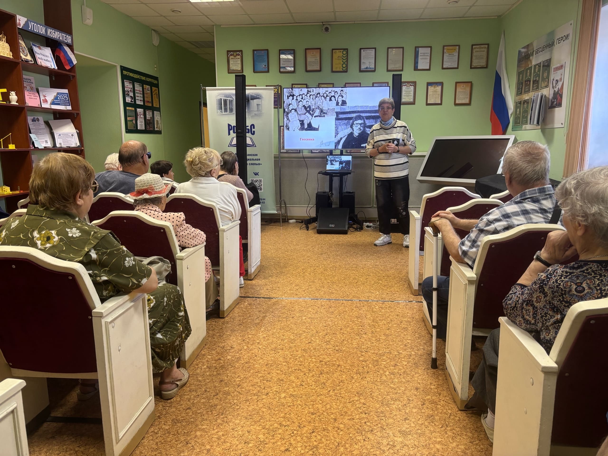 О жизни и творчестве композитора рассказала главный библиотекарь Регионального методического центра по работе с инвалидами Смирнова О.А. Рассказ сопровождался многочисленными видеозаписями самых популярных песен Тухманова.