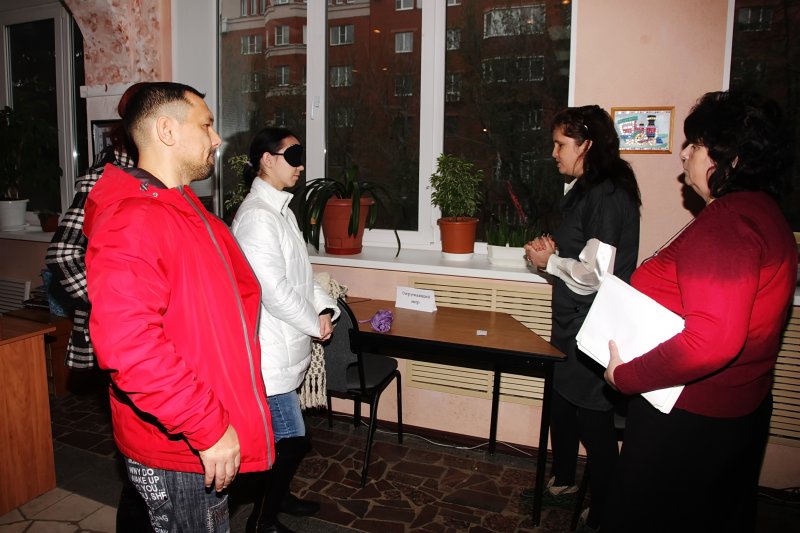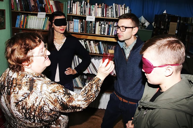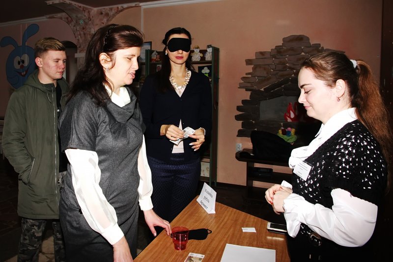 Участникам рассказали об истории и значении Международного дня слепых, затем объяснили правила игры и разделили на команды. В ходе квеста участники побывали на 7 станциях ("Белая трость", "Волшебное шеститочие", "Мобильный помощник", "В мире ароматов", "Звук вокруг", "Окружающий мир", "Копейка рубль бережет") и выполнили простые задания с завязанными глазами, используя при этом тактильные, слуховые и обонятельные ощущения.