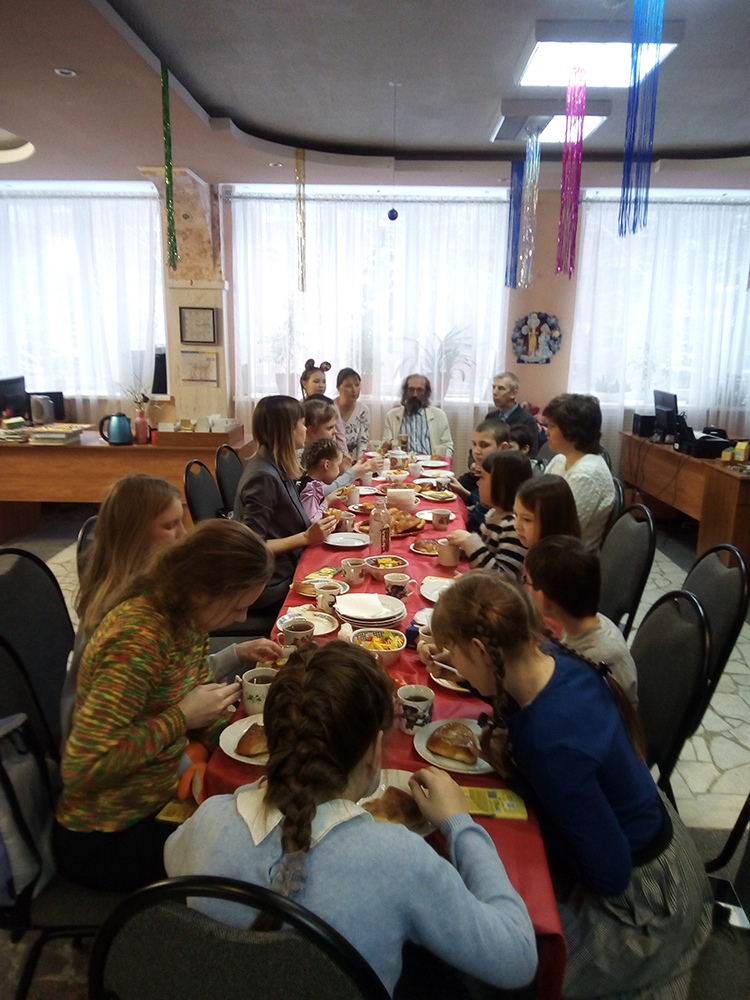 Беседа завершилась чаепитием; пироги и сладкие подарки принесли с собой наши замечательные гости.