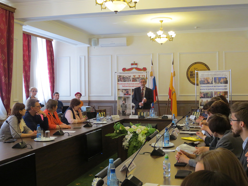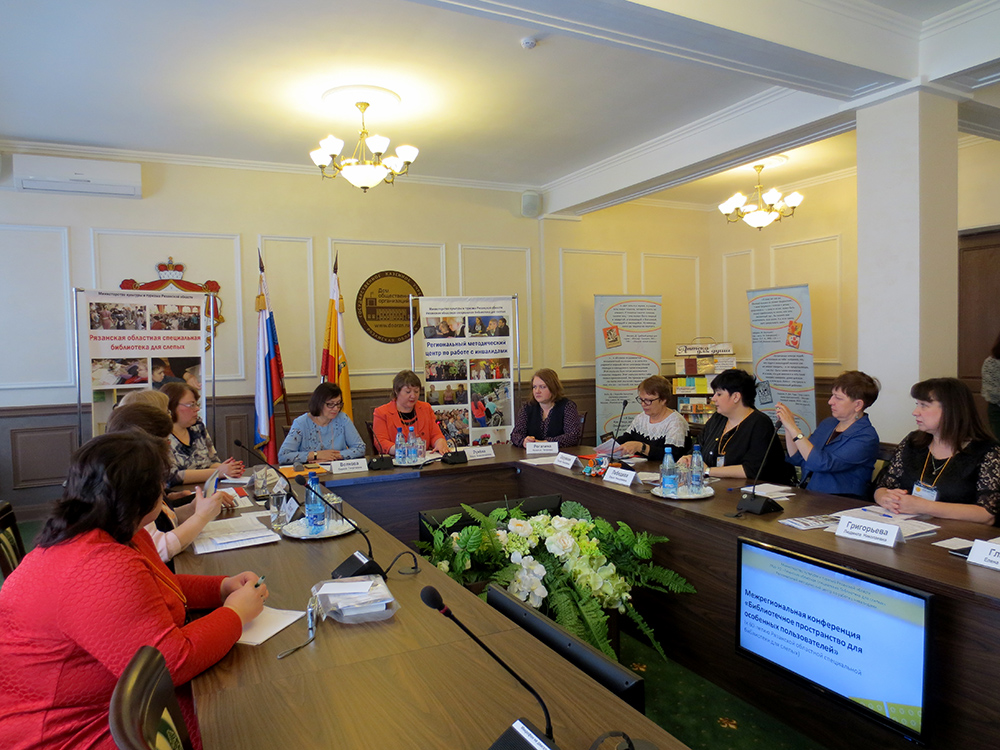 17 апреля 2018 г. в Доме общественных организаций в рамках празднования 60-летия Рязанской областной специальной библиотеки для слепых состоялась инициированная Региональным методическим центром по работе с инвалидами ГБУК РО «Рязанская областная специальная библиотека для слепых» Межрегиональная конференция «Библиотечное пространство для особенных пользователей». В работе конференции приняли участие специалисты Российской государственной библиотеки для слепых (г. Москва), Государственной библиотеки для слепых и слабовидящих (г. Санкт-Петербург), Владимирской областной специальной библиотеки для слепых, Общедоступной библиотеки (г. Радужный, Владимирская область), Липецкой областной специальной библиотеки для слепых, Башкирской республиканской специальной библиотеки для слепых (г. Уфа), государственных и муниципальных библиотек Рязанской области, Государственного музея-заповедника С.А. Есенина (с. Константиново, Рязанская область), школы-интерната № 26 г. Рязани.