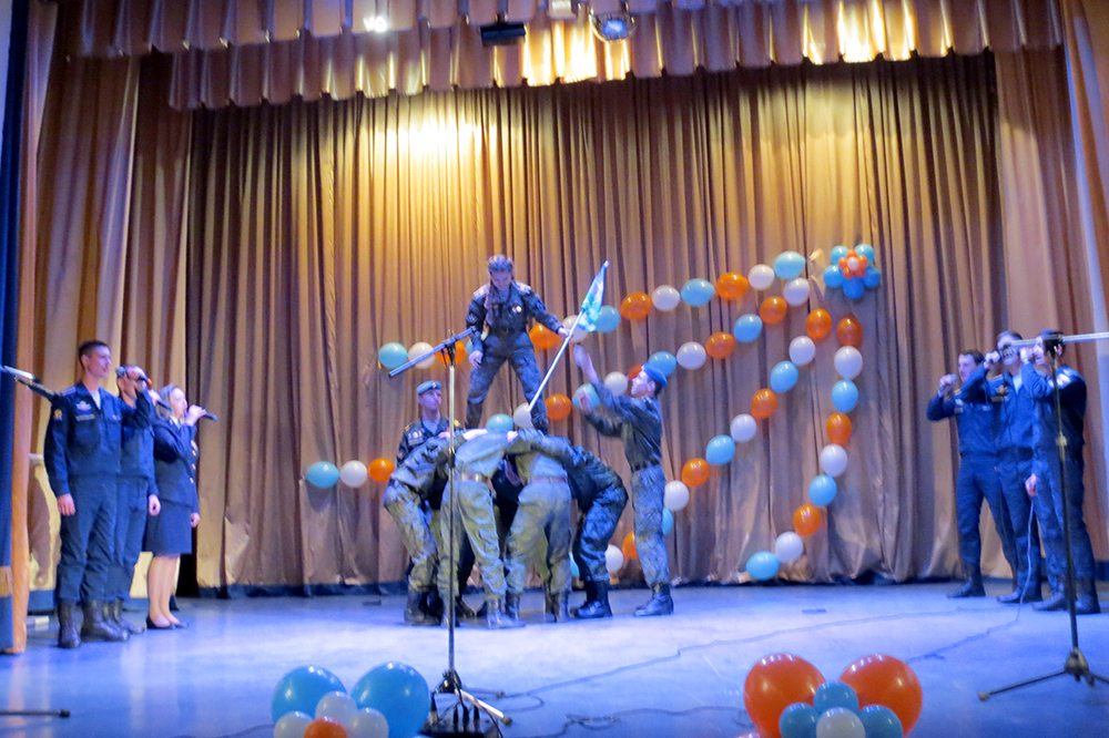 Концерт завершился коллективным поздравлением зала группе «Контакт» со 100-летним юбилеем Рязанского высшего воздушно-десантного училища.