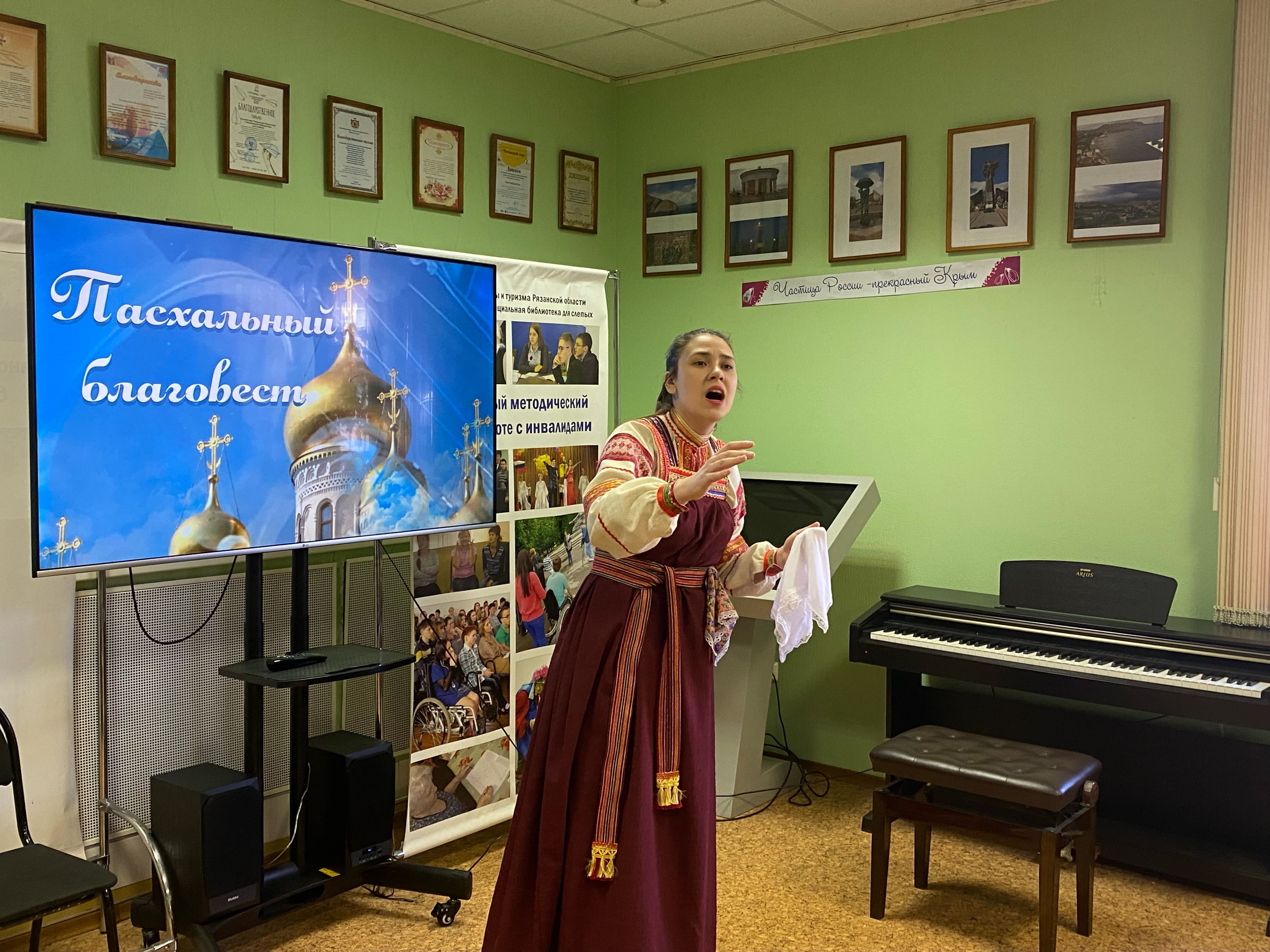 18 апреля 2023 года в актовом зале Рязанской областной специальной библиотеки для слепых в рамках музыкальной гостиной «Там, где живет музыка» прошёл праздничный концерт ко дню Светлой Пасхи «Пасхальный благовест» студентов Рязанского музыкального колледжа имени Г. и А. Пироговых.