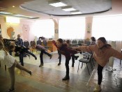 Когда все весёлые испытания были с успехом пройдены, мальчиков поздравили девочки.