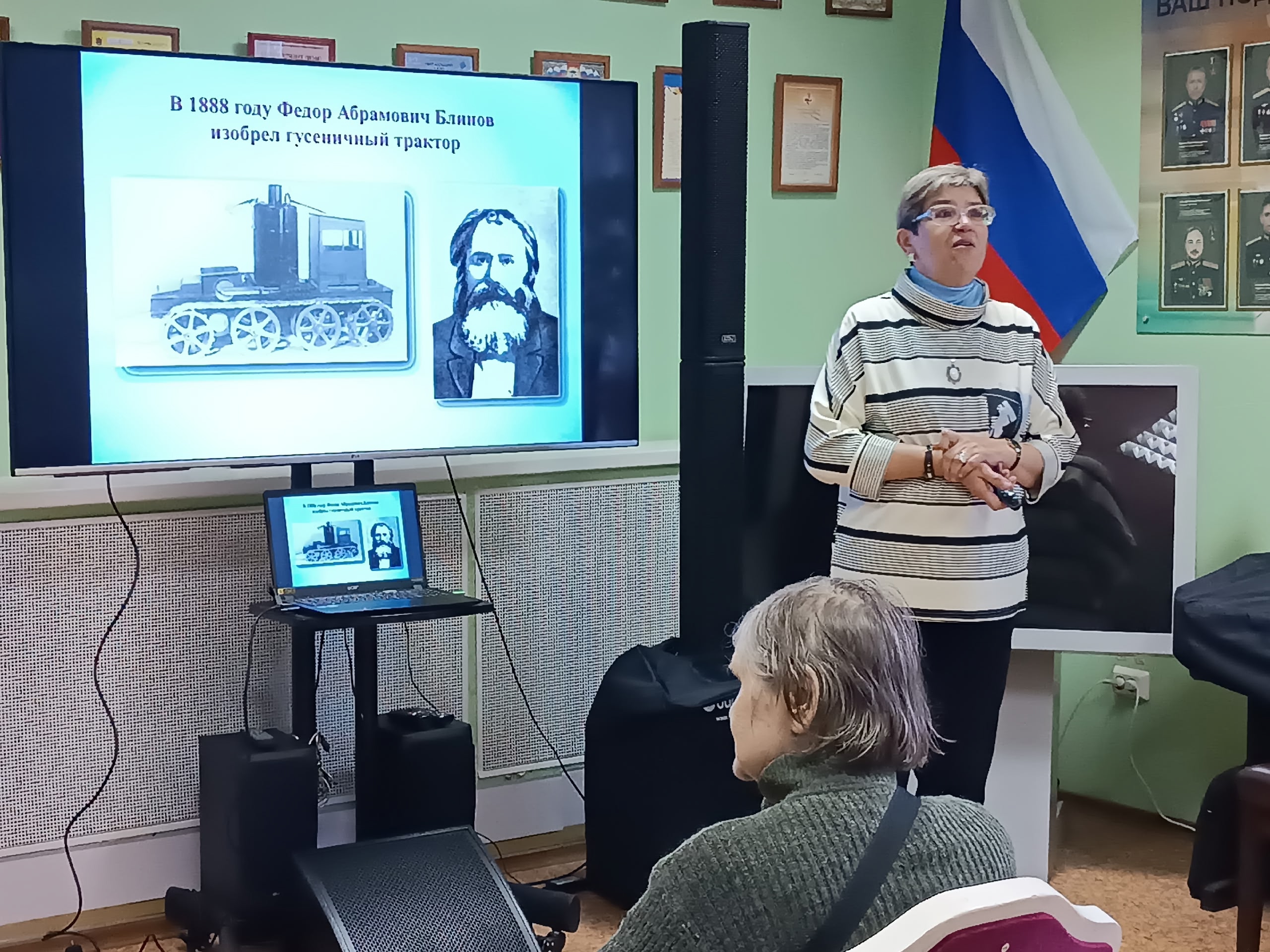 Величие страны характеризуется наличием выдающихся людей, и Россия богата на такие имена. 19 сентября 2025 года в библиотеке состоялся час полезной информации «Их достижения прославили Россию», в котором главный библиотекарь Регионального методического центра по работе с инвалидами Смирнова О.А. рассказала о мировых открытиях и изобретениях, совершённых в разные годы российскими учёными, инженерами и конструкторами.