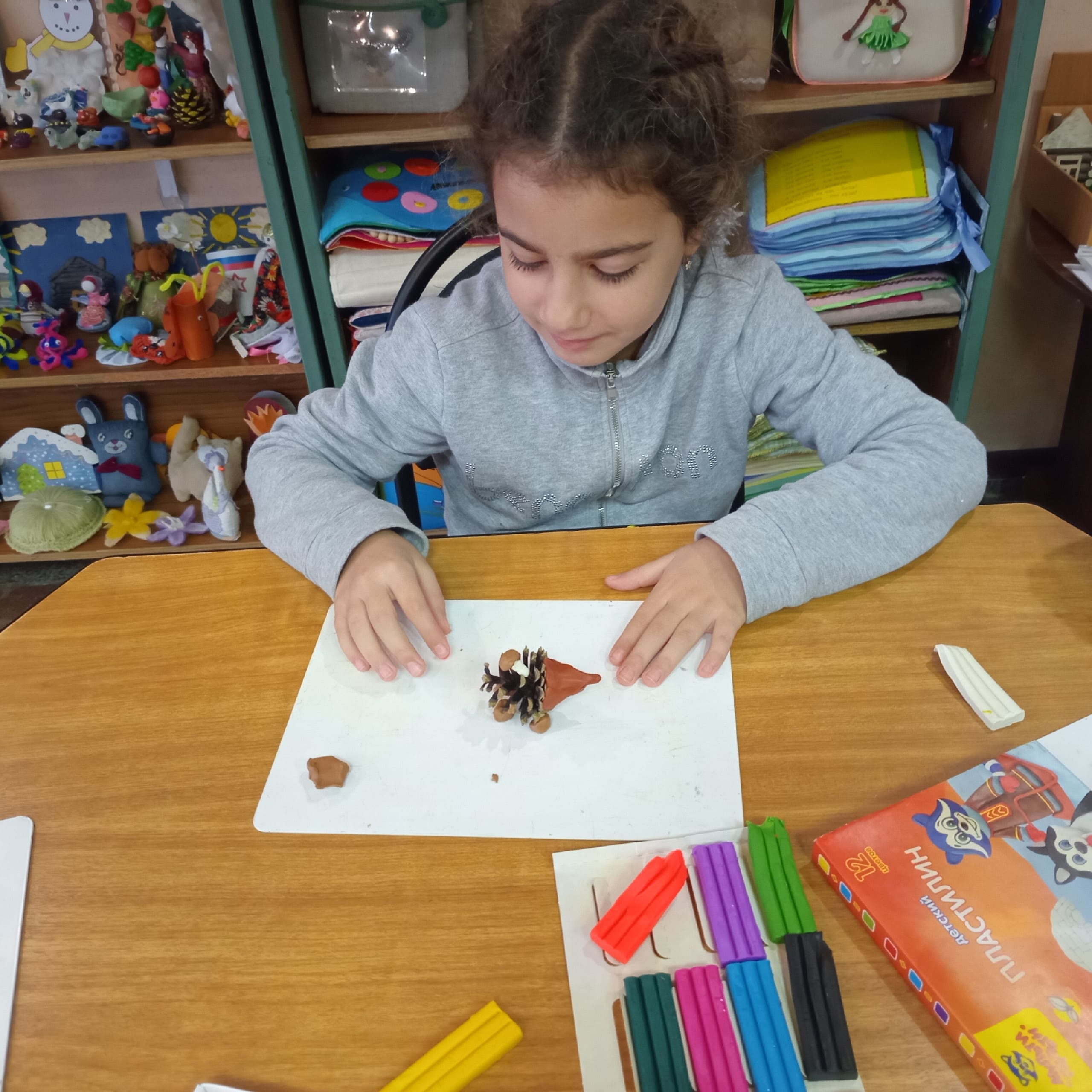 20 сентября 2025 года в детском отделе Рязанской областной специальной библиотеки для слепых состоялось занятие кружка «Умелые ручки» на тему «Поделка из шишек. Ёжик».