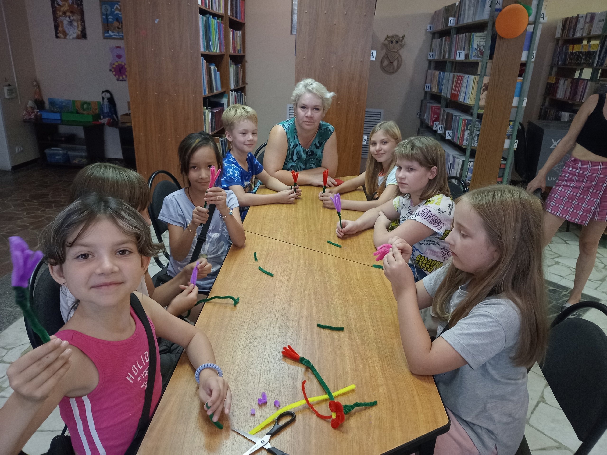 Под руководством сотрудника детского отдела ребята научились делать из синельной проволоки красивые бархатистые цветы, которые могут стать хорошим подарком.