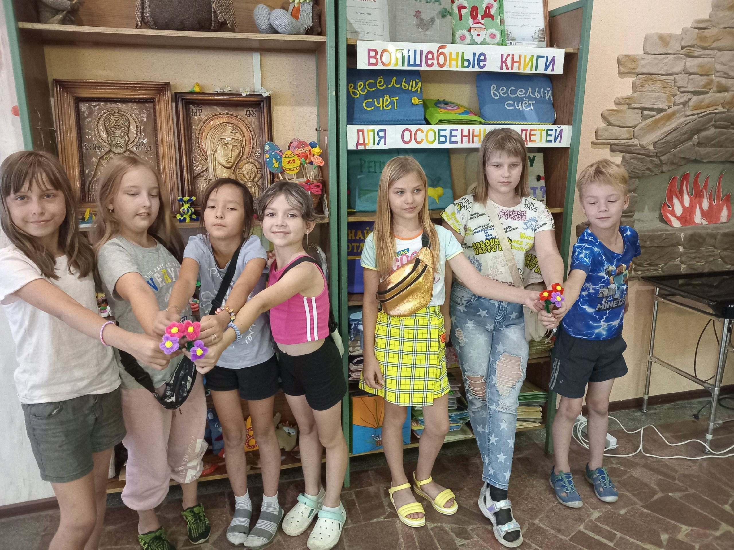 21 августа 2024 года в детском отделе Рязанской областной специальной библиотеки для слепых в рамках библиотечного проекта «К книге и чтению через досуг и общение» прошёл мастер-класс «Цветы из синельной проволоки».