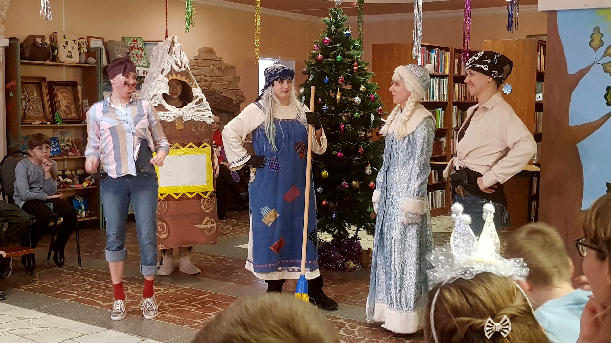 Сотрудники библиотеки, перевоплотившись в сказочных героев: Бабу Ягу, избушку, волшебника, разбойников, вовлекли детей в волшебный мир сказочных приключений. Игры, загадки, конкурсы, хороводы с Дедом Морозом и Снегурочкой подняли настроение не только детям, но и родителям.