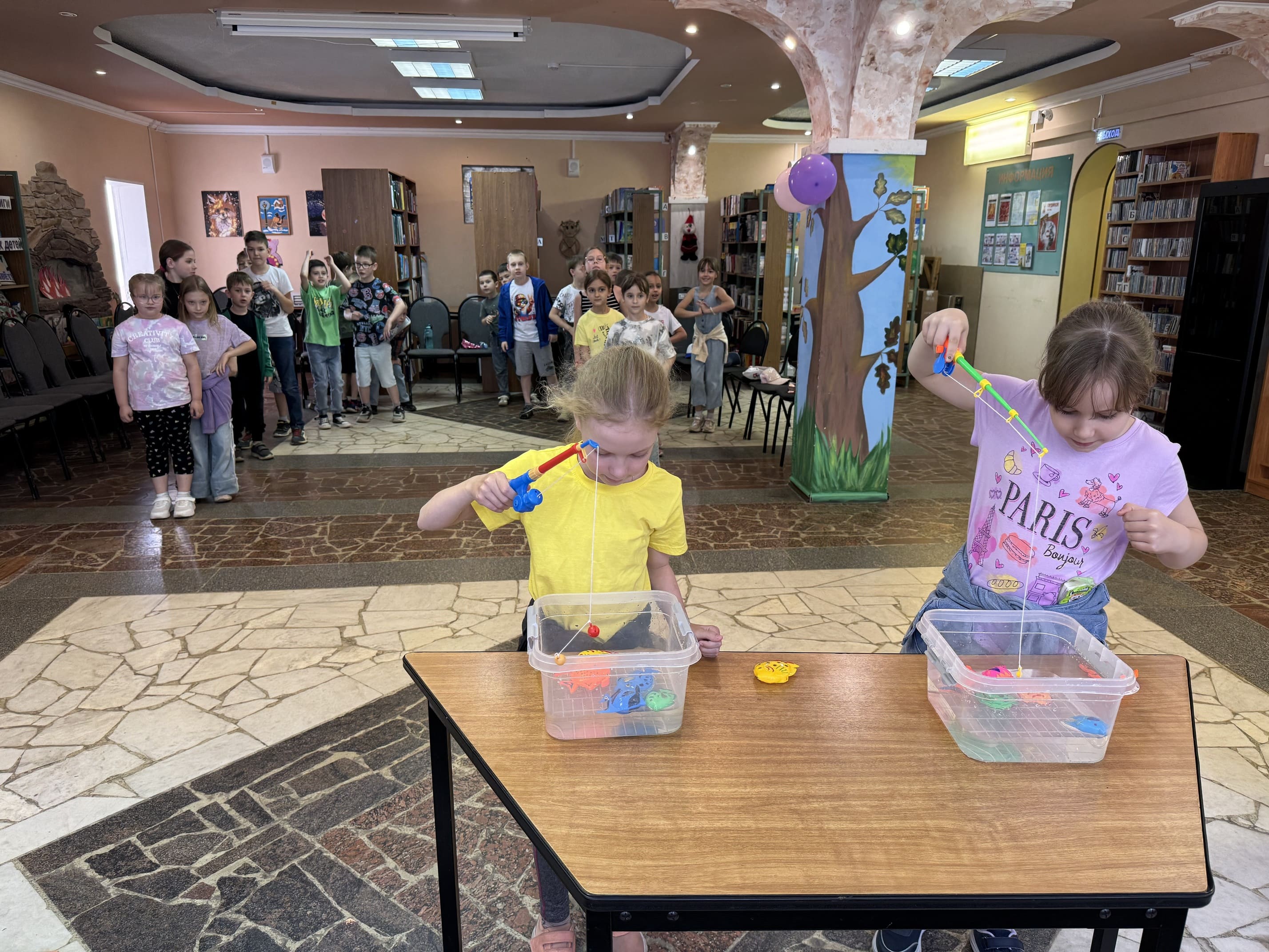 Сегодня состоялось первое мероприятие нашего летнего библиотечного проекта, и прошло оно по-настоящему празднично. Ребятам были предложены разнообразные развлечения: загадки, шарады, физкультминутка, а также подвижные игры «Ступа Бабы-Яги», «Весёлый шарик», конкурсы «Холодно – горячо», «Нарисуй портрет с закрытыми глазами», «Рыбаки», «Водоносы», «Собери витаминки», «Летают не летают», «Бег в обруче» и другие.