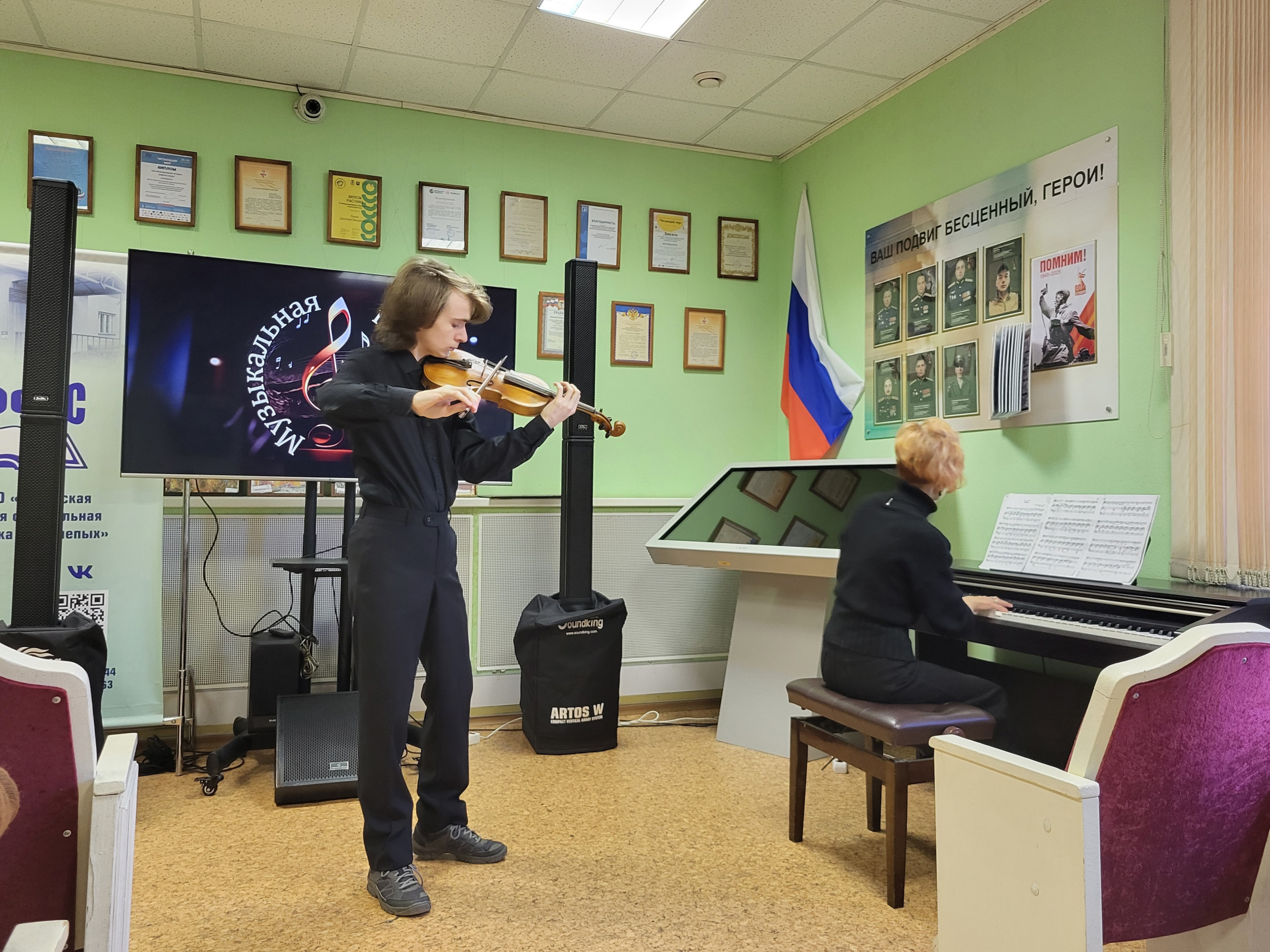 Виртуозную игру на скрипке представил Иван Бастрыкин, исполнив романс С.В. Рахманинова. Ему аккомпанировала Людмила Вячеславовна Журавлева.
