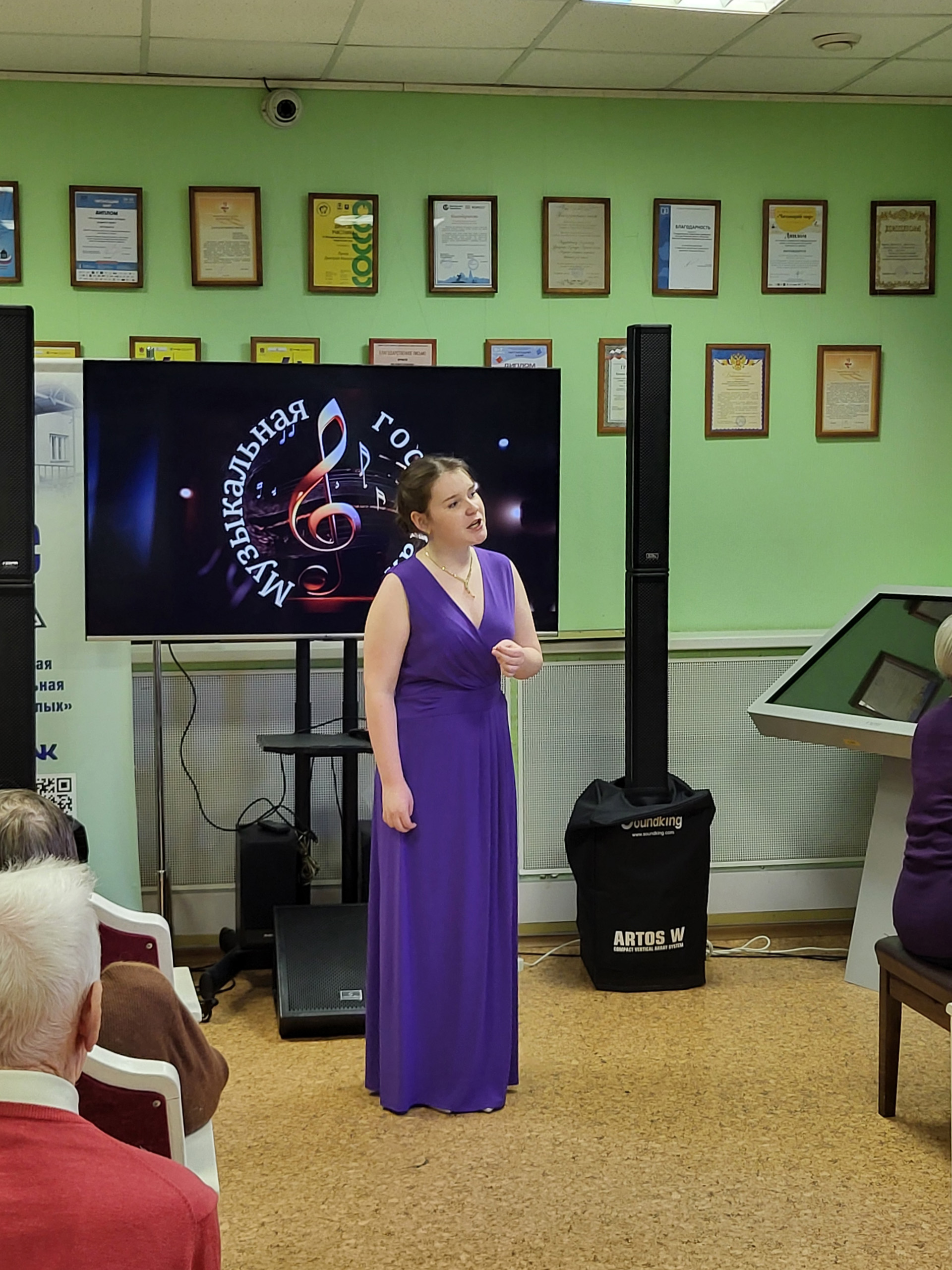 Вдохновляющее выступление Липилиной Вероники никого не оставило равнодушным. Она проникновенно прочитала стихотворение Сергея Есенина «Низкий дом с голубыми ставнями», а затем исполнила всеми любимый военный романс «Военно-бытовая песня».